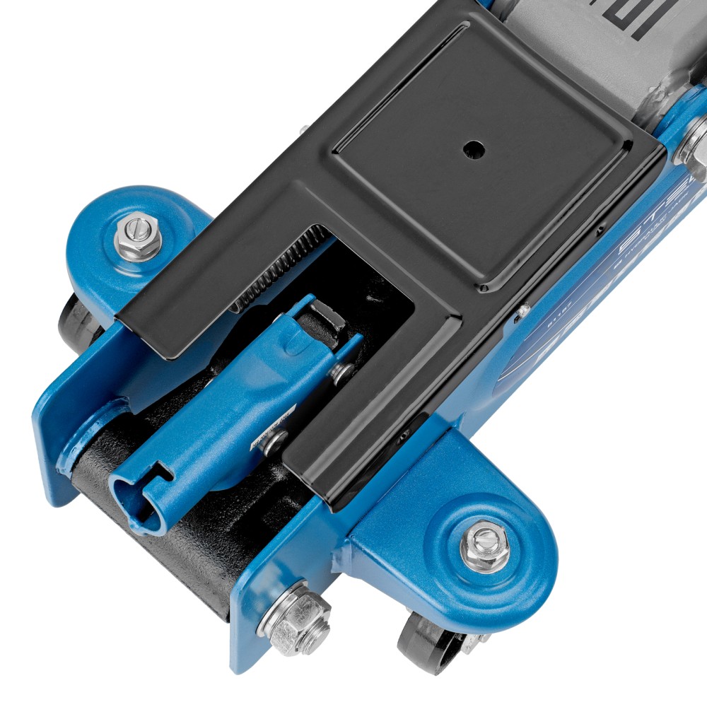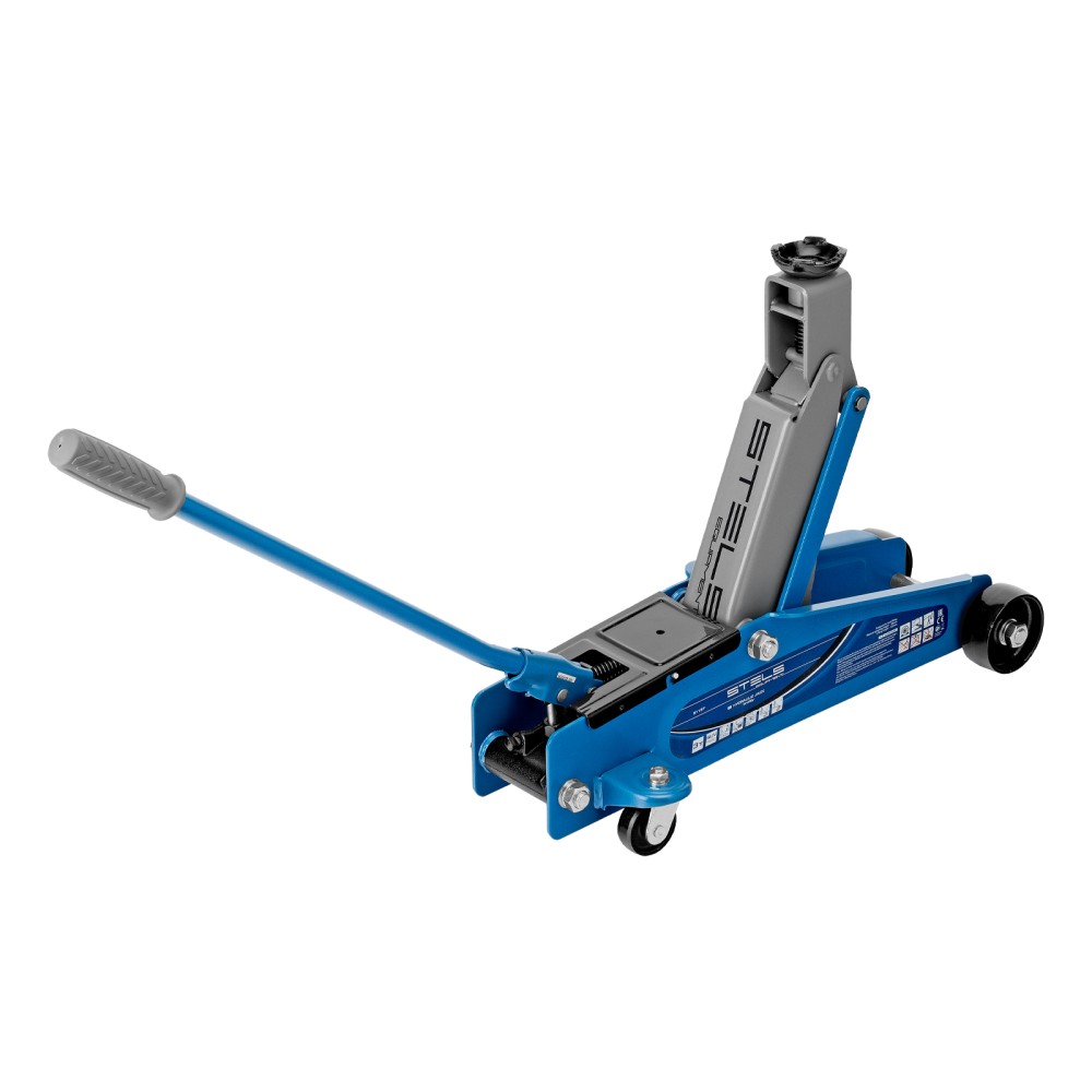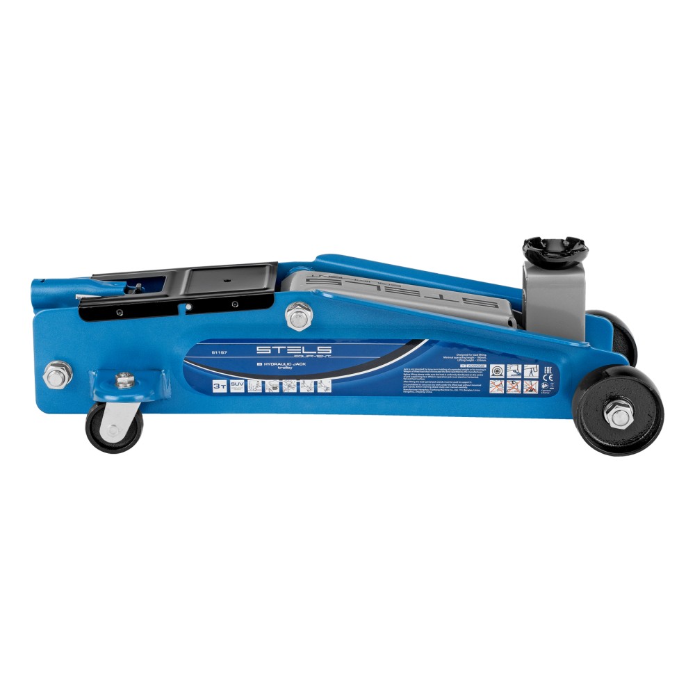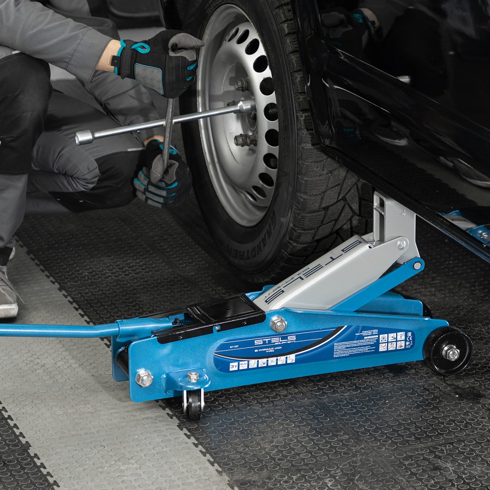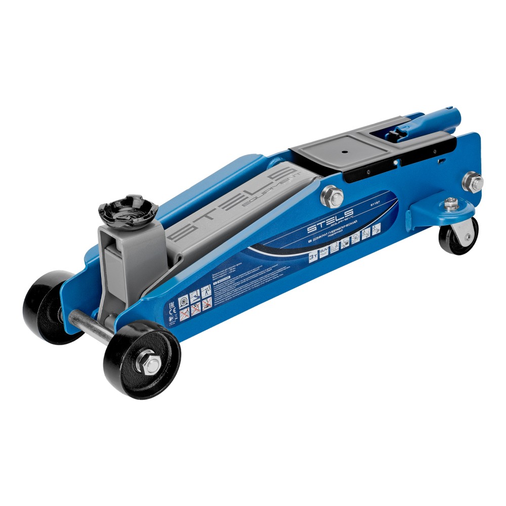 Подкатной гидравлический домкрат Stels 51157 с высоким подъемом 190 мм позволяет поднимать грузы весом до 3 т на высоту 535 мм и подходит для автомобилей класса SUV с увеличенным дорожным просветом. Может использоваться для самостоятельного обслуживания авто.ПреимуществаУстановка точной высоты подъема — положение опорной площадки регулируется в пределах 50 мм.Защита от перегрузки — предохранительный клапан не допускает подъем груза массой более 3 т.Маневренность — задние колеса сделаны поворотными, что облегчает установку и извлечение устройства.Комфортная работа даже при отрицательной температуре — благодаря рифленой накладке рабочая ручка не скользит в ладони.Удобное хранение и транспортировка — домкрат поставляется в надежном кейсе из ударопрочного пластика.