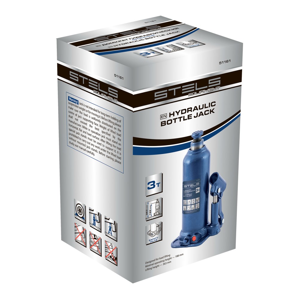 Гидравлический бутылочный домкрат Stels 51161 применяется для быстрого поднятия грузов весом до 3 т на высоту 188-363 мм. Оптимален для автомобилей с большим клиренсом. Домкрат будет полезен автолюбителям и профессионалам для ремонта транспортного средства.ПреимуществаБезопасная эксплуатация — благодаря предохранительному клапану домкрат не поднимает грузы тяжелее 3000 кг.Прочность и долговечность — корпус выполнен из коррозионностойкой стали.Надежная конструкция — домкрат не имеет резьбовых соединений, т.к. корпус приварен к станине.