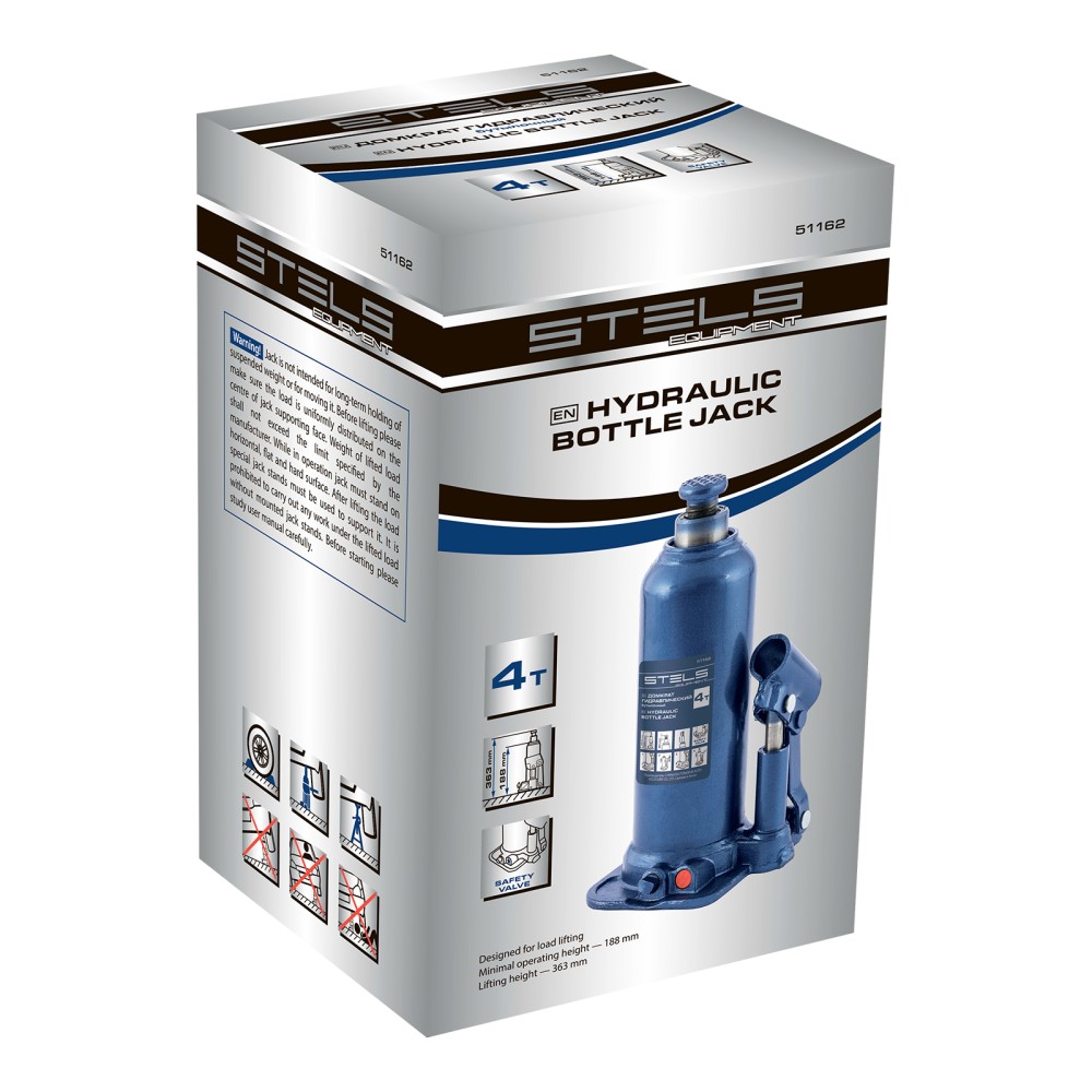 Гидравлический бутылочный домкрат Stels 51162 применяется для быстрого поднятия грузов весом до 4 т на высоту 188-363 мм. Оптимален для автомобилей с большим клиренсом. Домкрат будет полезен автолюбителям и профессионалам для ремонта транспортного средства.ПреимуществаБезопасная эксплуатация — благодаря предохранительному клапану домкрат не поднимает грузы тяжелее 4000 кг.Прочность и долговечность — корпус выполнен из коррозионностойкой стали.Надежная конструкция — домкрат не имеет резьбовых соединений, т.к. корпус приварен к станине.