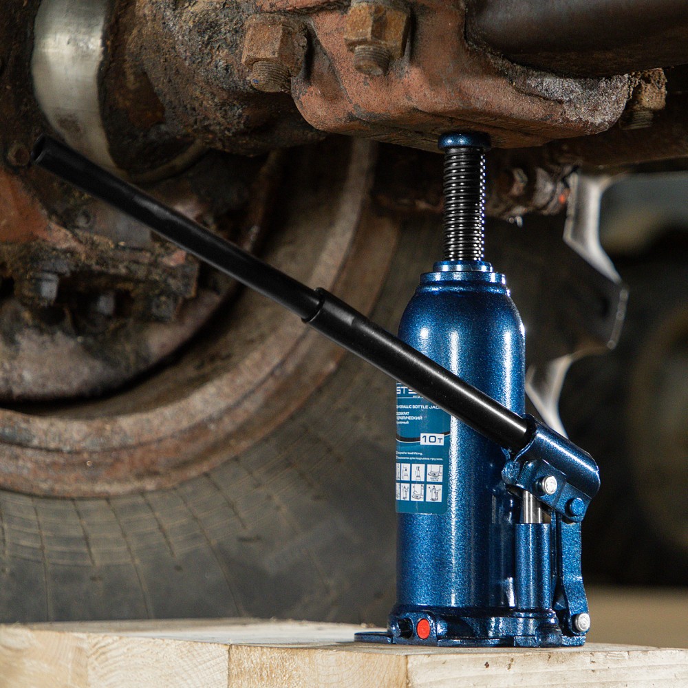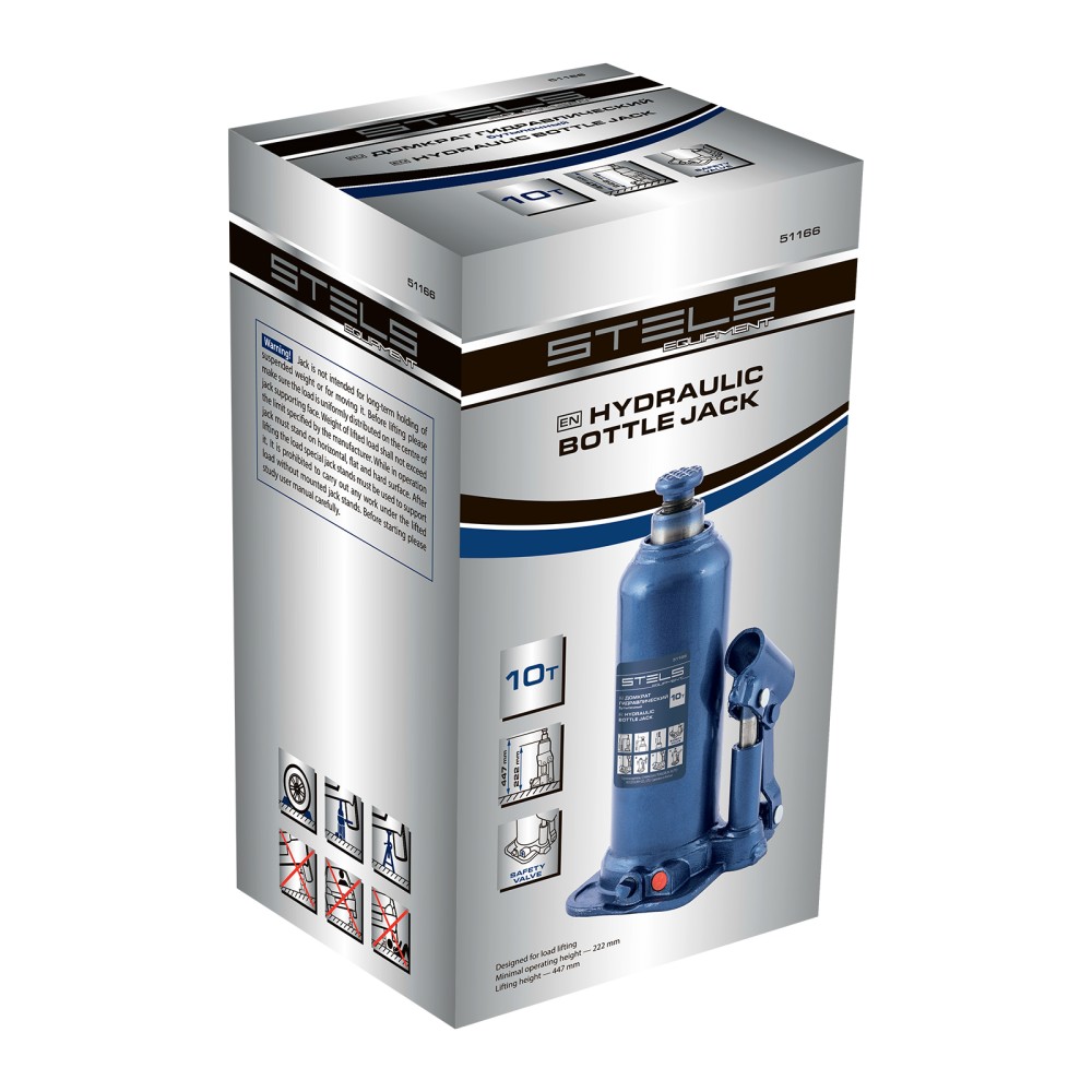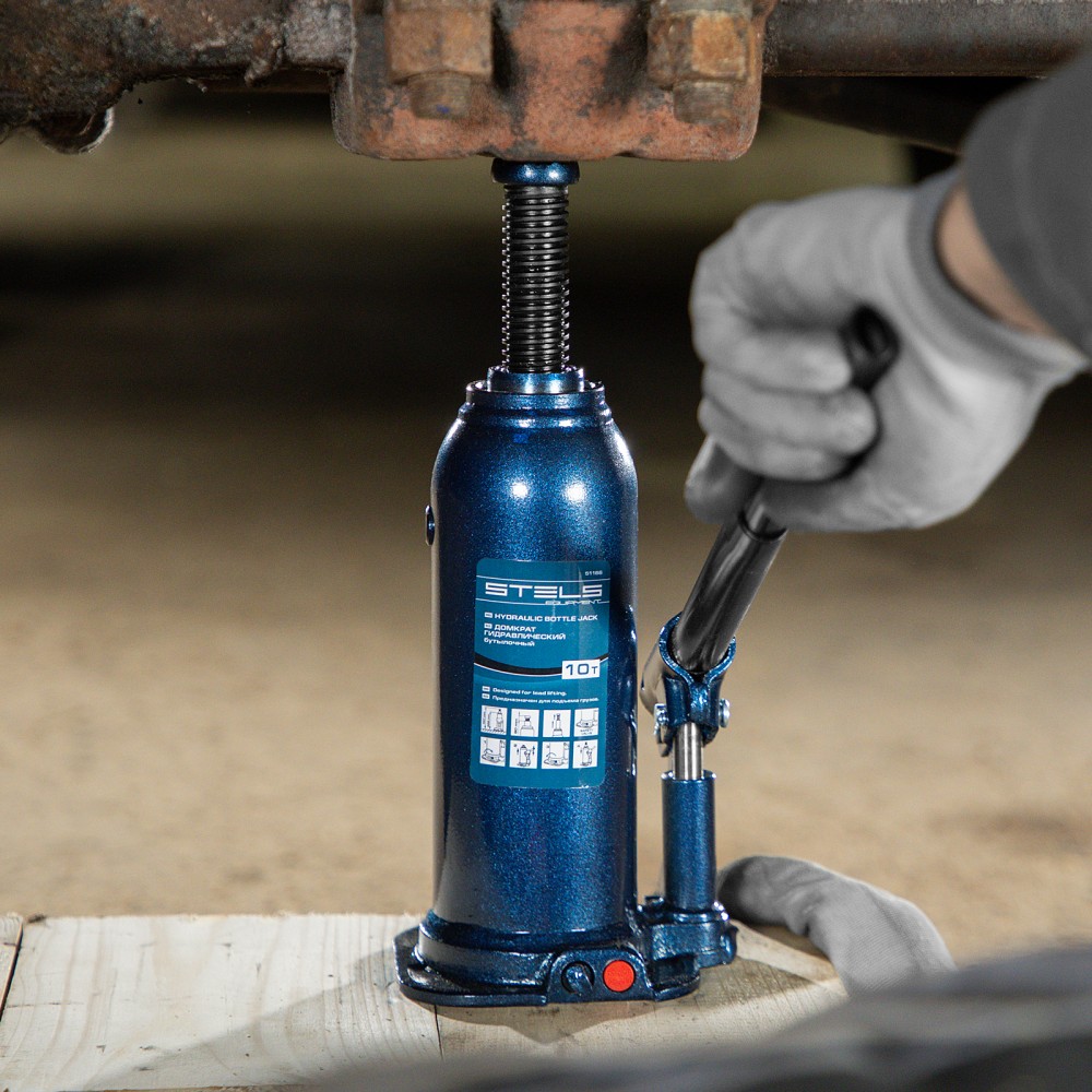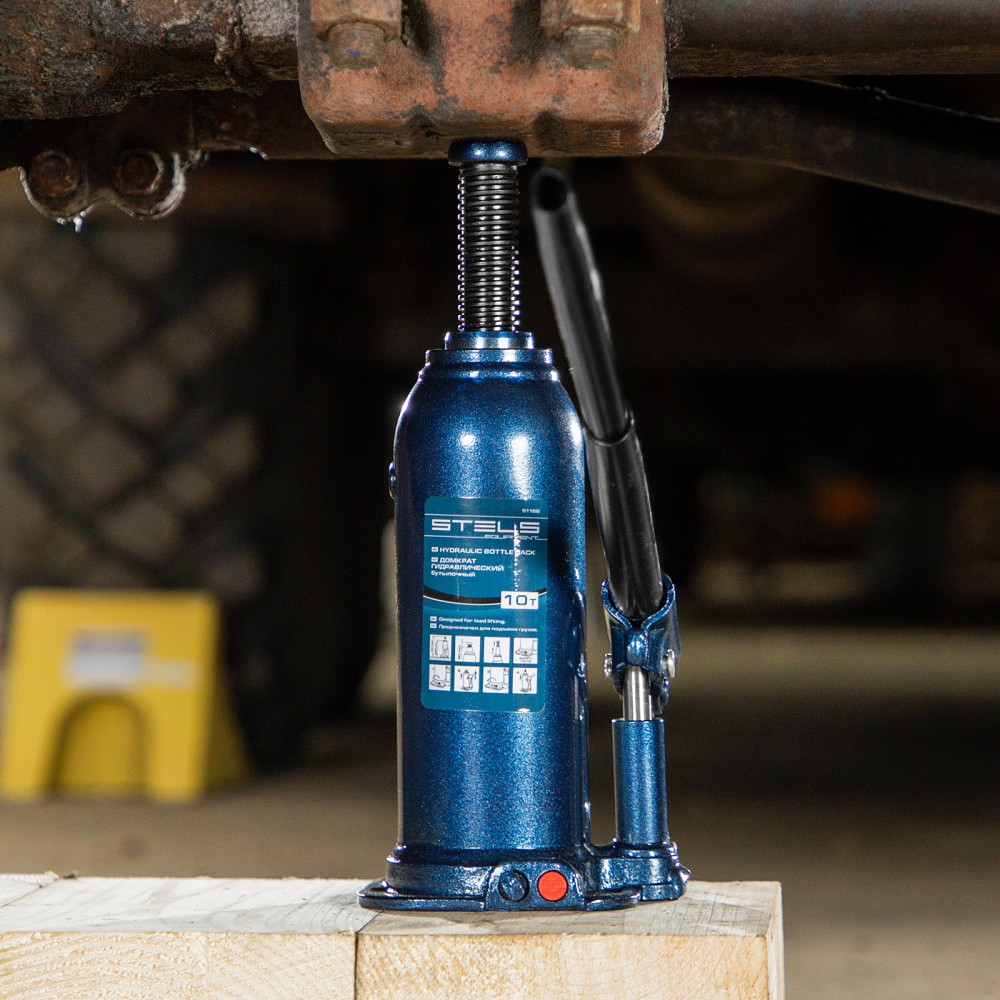 Гидравлический бутылочный домкрат Stels 51166 применяется для быстрого поднятия грузов весом до 10 т на высоту 222-447 мм. Оптимален для автомобилей с большим клиренсом. Домкрат будет полезен автолюбителям и профессионалам для ремонта транспортного средства.ПреимуществаБезопасная эксплуатация — благодаря предохранительному клапану домкрат не поднимает грузы тяжелее 10 т.Прочность и долговечность — корпус выполнен из коррозионностойкой стали.Надежная конструкция — домкрат не имеет резьбовых соединений, т.к. корпус приварен к станине.