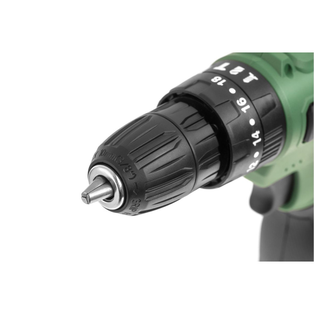 - Компактная и эргономичная ударная дрель-шуруповерт с LiIon аккумулятором.