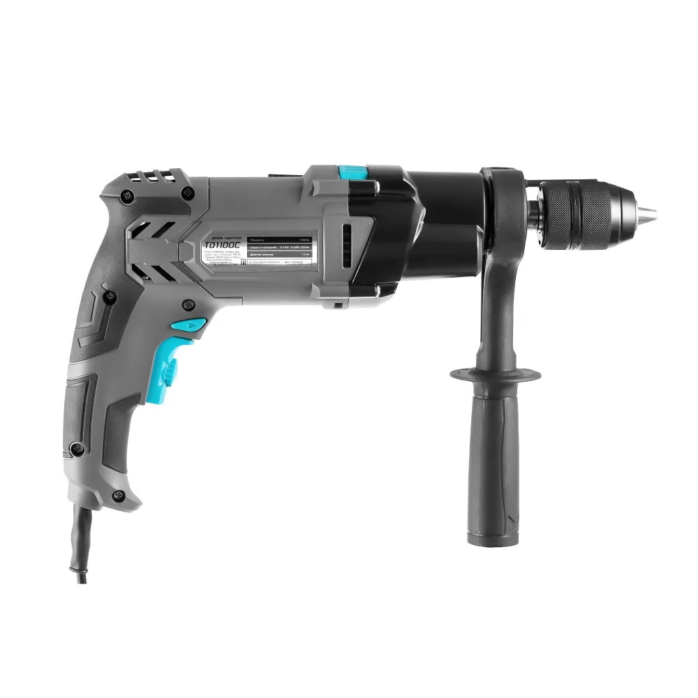 - Ударная дрель с двигателем мощностью 1100 Вт идеально подойдет для сверления дерева, металла и кафеля в безударном режиме, а также кирпича и легкого бетона в ударном режиме.