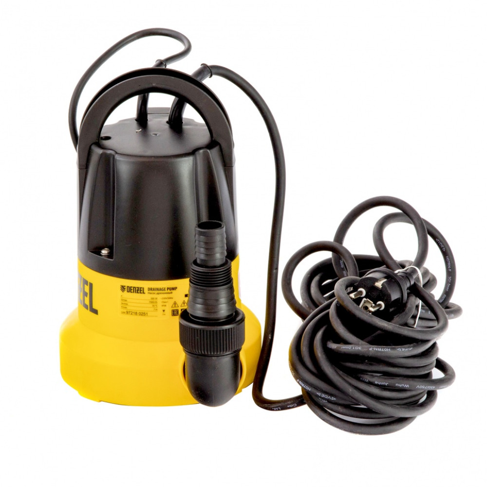 Дренажный насос Denzel DP500E 97218 мощностью 500 Вт и производительностью 7000 л/ч обеспечивает высоту подъема 7 м и подходит для откачки грязной воды с включениями диаметром до 5 мм из резервуаров, подвалов, погребов, канав. Используется также для подачи чистой воды из колодцев и организации систем полива.