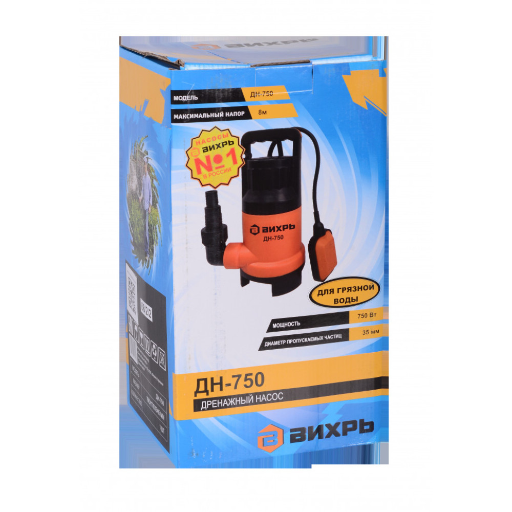 - Перекачивает загрязненную воду с частицами размером до 35 мм.