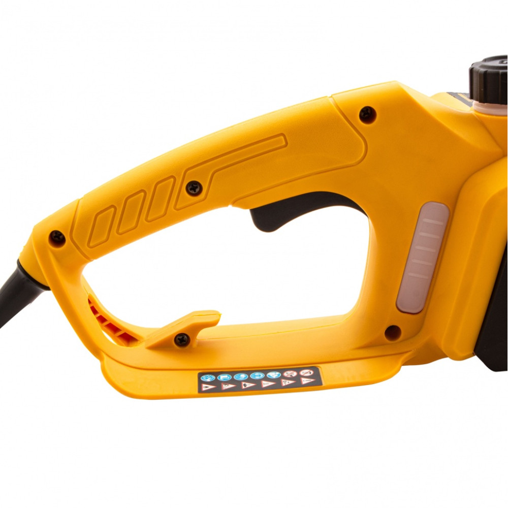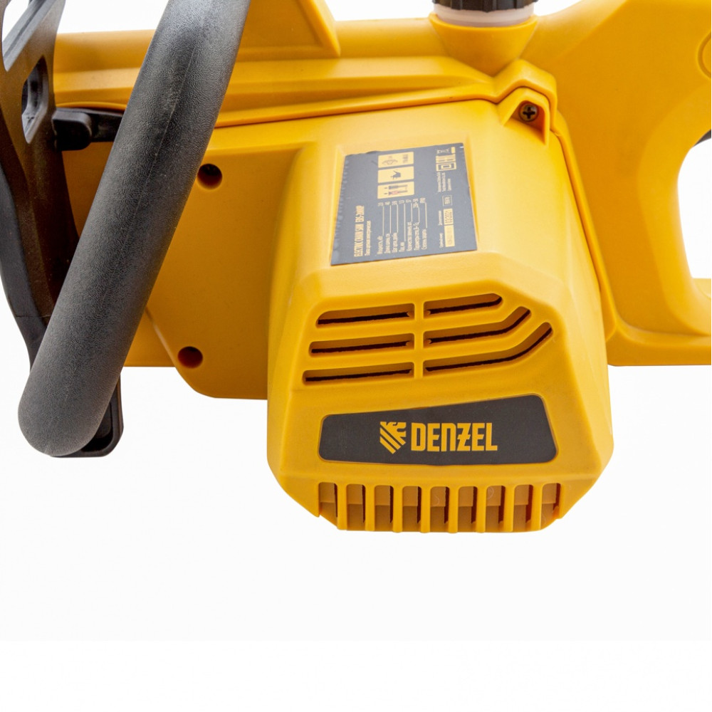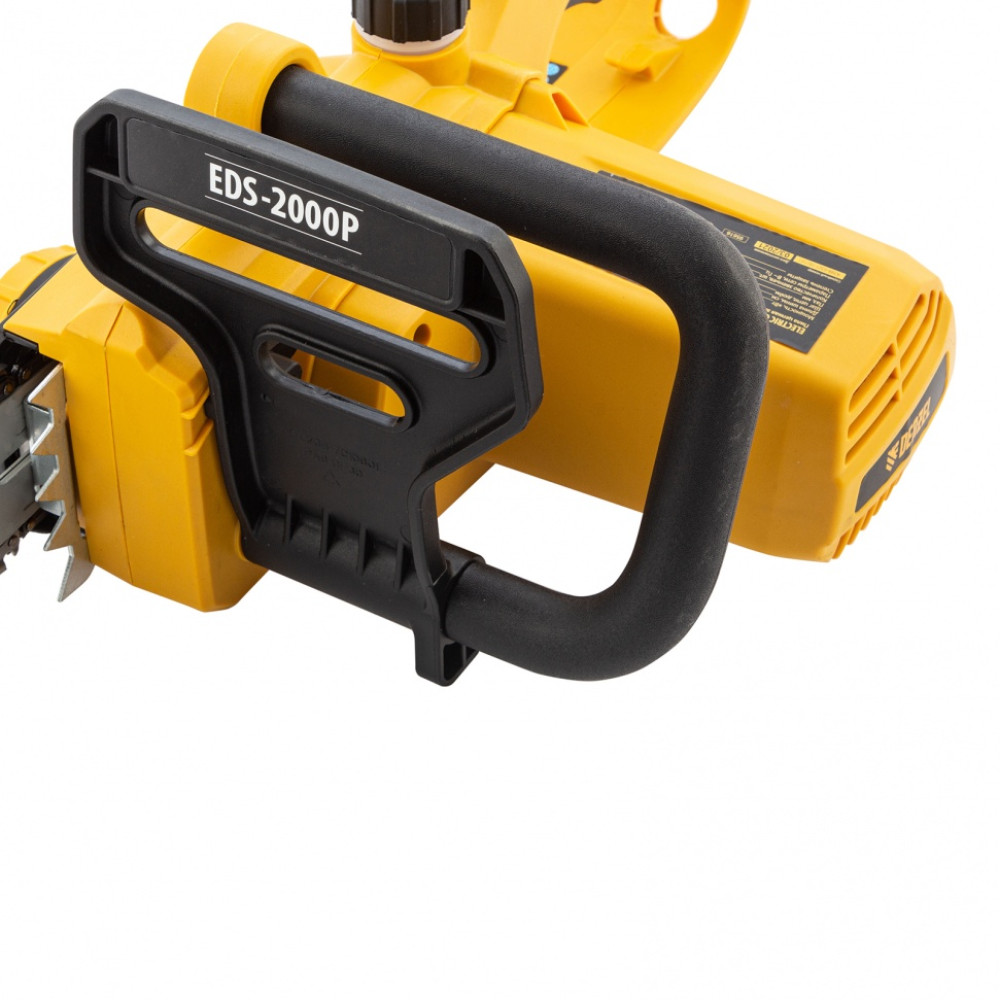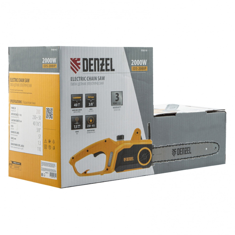Пила цепная электрическая Denzel EDS-2000P 95616 мощностью 2 кВт, с поперечным расположением двигателя, комплектуется шиной длиной 40 см с 57 звеньями (шаг 3/8″, паз 1,3 мм). Предназначена для заготовки дров, распиливания готовых материалов, подравнивания ветвей в саду, ремонта и частного строительства.