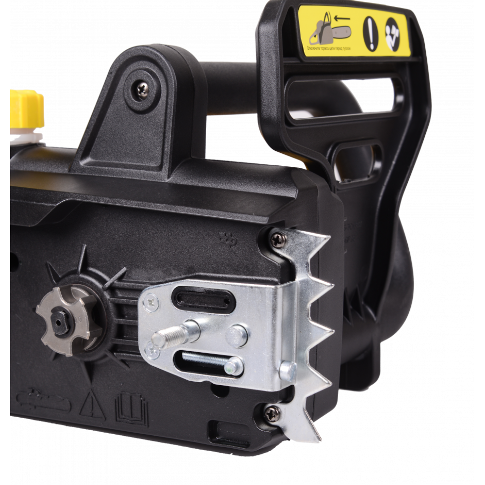 - За счёт зубчатого упора фронтальная часть корпуса пилы не будет повреждаться о ветви и другие элементы;