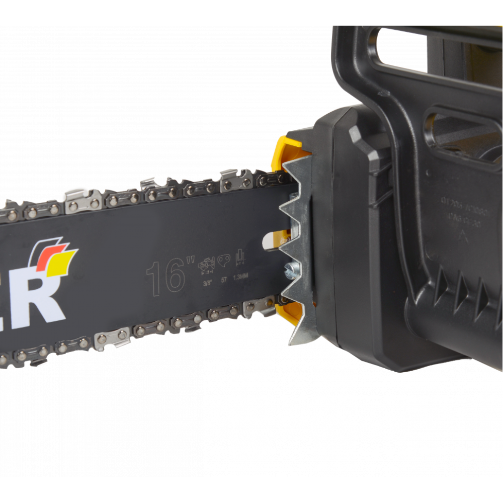 - Безопасность. Автоматический тормоз цепи в виде щитка обеспечивает безопасность работы с электропилой, в первую очередь, защиту ваших рук.