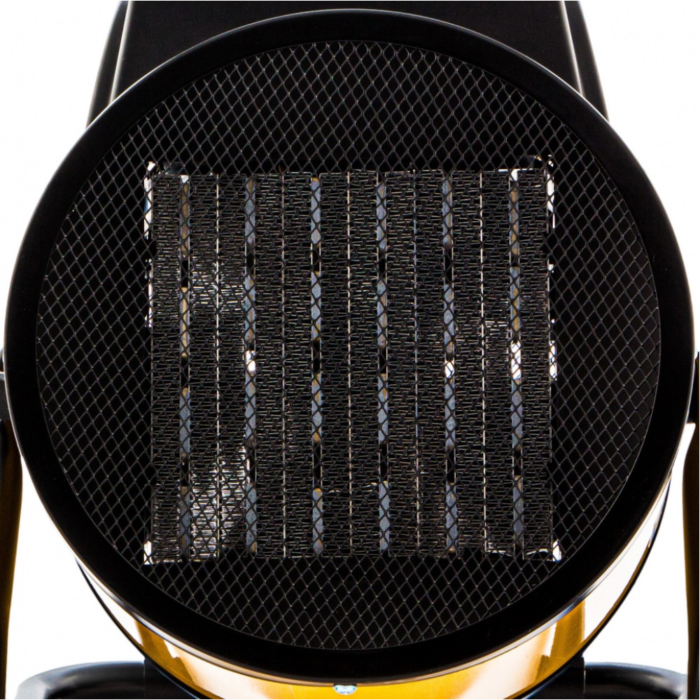 Тепловая пушка (тепловентилятор) Denzel DHC 3-150 96431 с керамическим нагревателем потребляет мощность 0,025, 1,5 или 3 кВт в зависимости от установленного режима и подходит для бытового и полупрофессионального применения. С ее помощью можно обогреть помещение площадью до 40 кв. м или дистанционно просушить поверхность после отделки (оштукатуренные и окрашенные стены, стяжки). Также устройство можно использовать как вентилятор в жару. Керамический нагревательный элемент не сушит воздух и не выделяет вредных веществ, поэтому тепловентилятор безопасен для людей и животных.