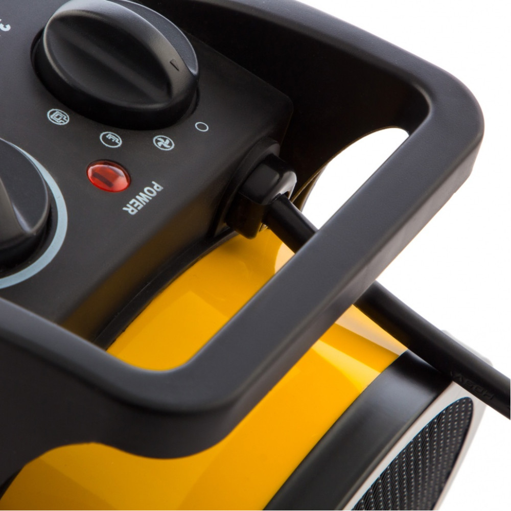 - Удобное хранение и транспортировка — тепловентилятор весит 2,9 кг, а на корпусе предусмотрена ручка.