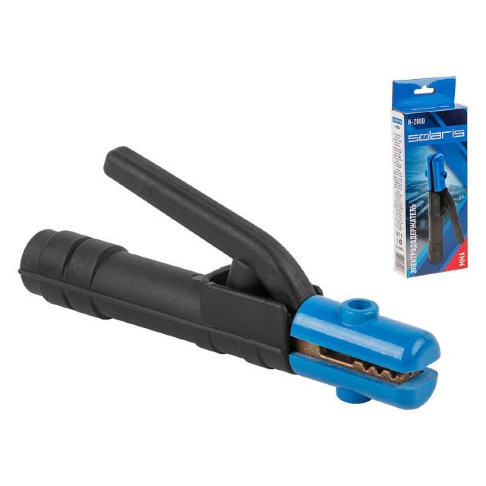 Электрододержатель - аксессуар для ручной дуговой сварки, который удерживает электрод во время проведения сварочных работ. Электрод можно установить в различных положениях: под углом 45, 90, 135 и 180 в зависимости от требуемых задач. Модель H-200D - оптимальный выбор для профессиональной эксплуатации. Удобство захвата, надежная фиксация электрода, оптимальные размеры и вес, качественные материалы - основные критерии при длительной эксплуатации электрододержателя.