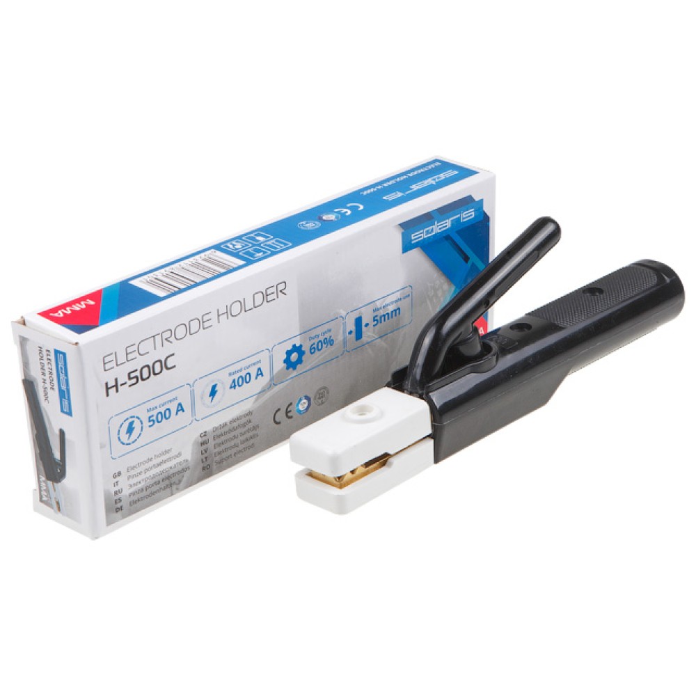 Электрододержатель - аксессуар для ручной дуговой сварки, который удерживает электрод во время проведения сварочных работ. Электрод можно установить в различных положениях: под углом 45, 90, 135 и 180 в зависимости от требуемых задач. Модель H-500C - оптимальный выбор для профессиональной эксплуатации. Удобство захвата, надежная фиксация электрода, оптимальные размеры и вес, качественные материалы - основные критерии при длительной эксплуатации электрододержателя.