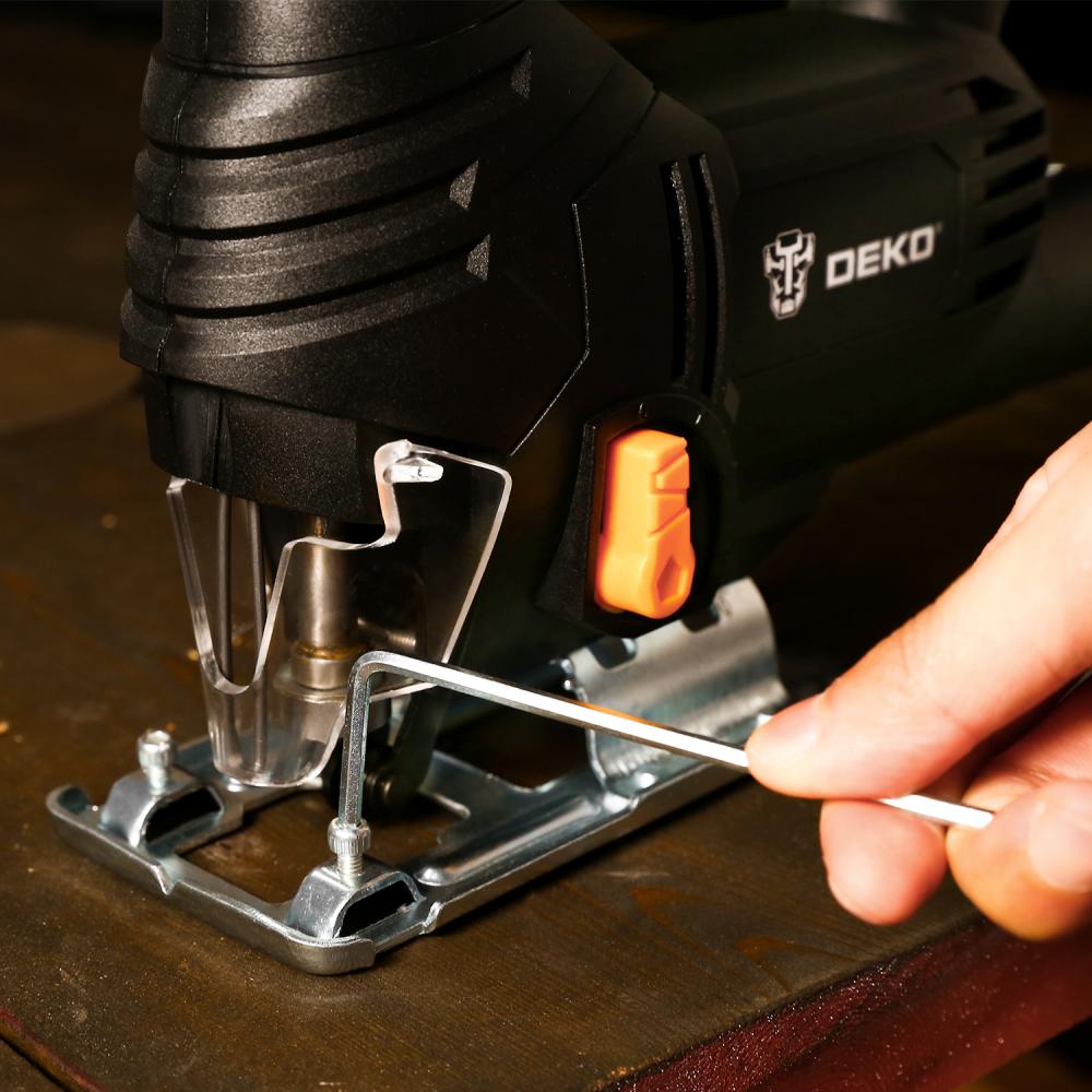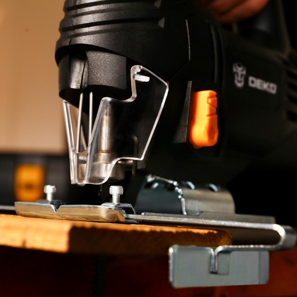 - Электролобзик DEKO DKJS850 используется для распиливания дерева, металла, пластика, резины при отделочных или ремонтных работах.