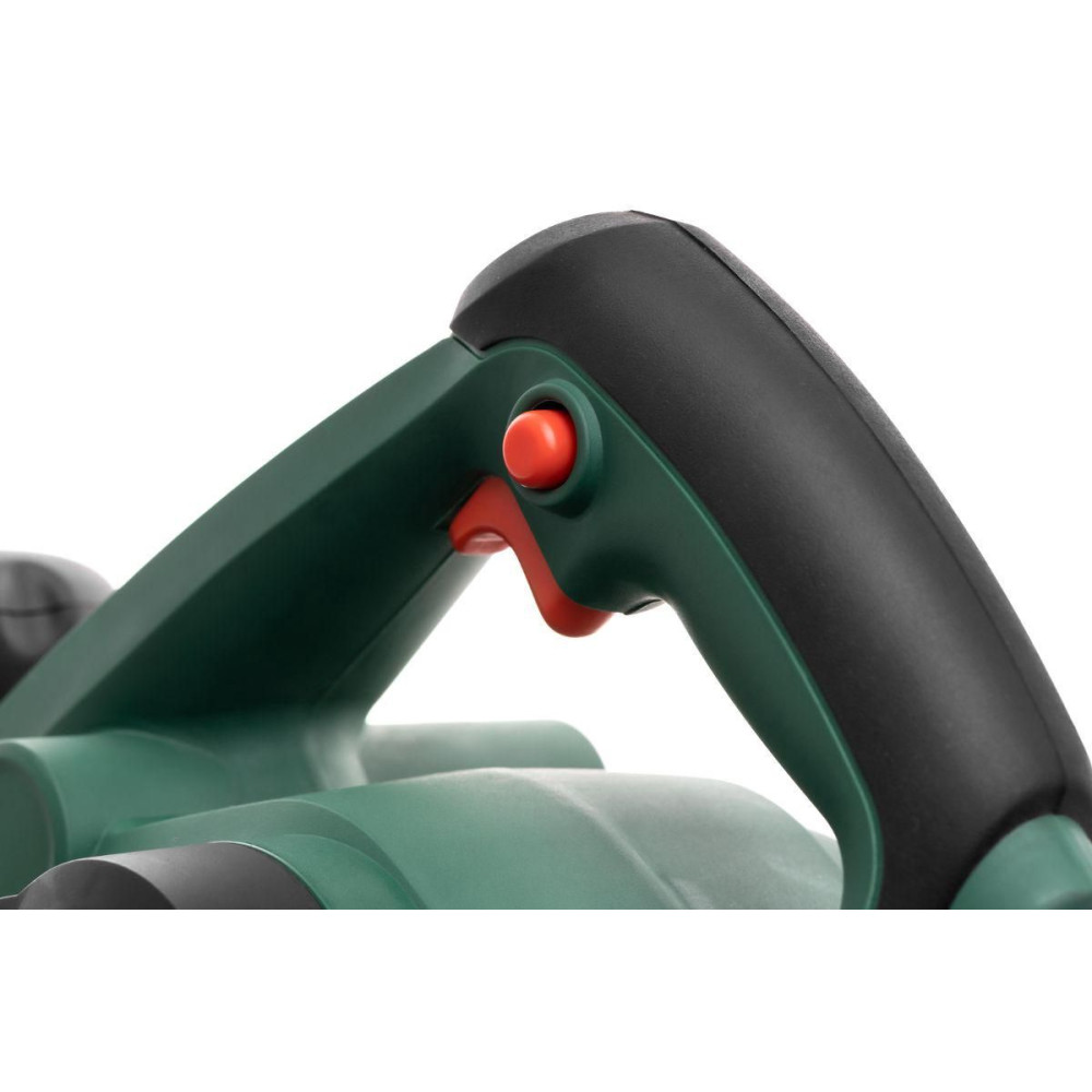 - Легкий рубанок с шириной строгания 82 мм оснащен барабаном с 2-мя незатачиваемыми двусторонними лезвиями.