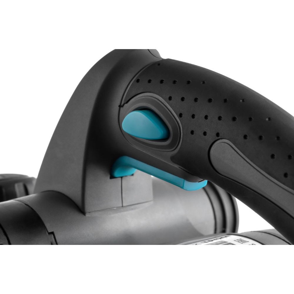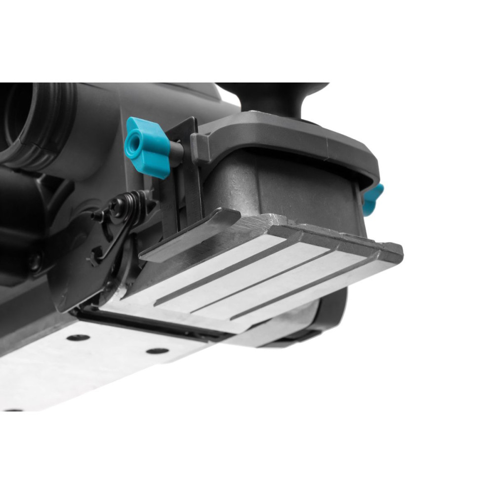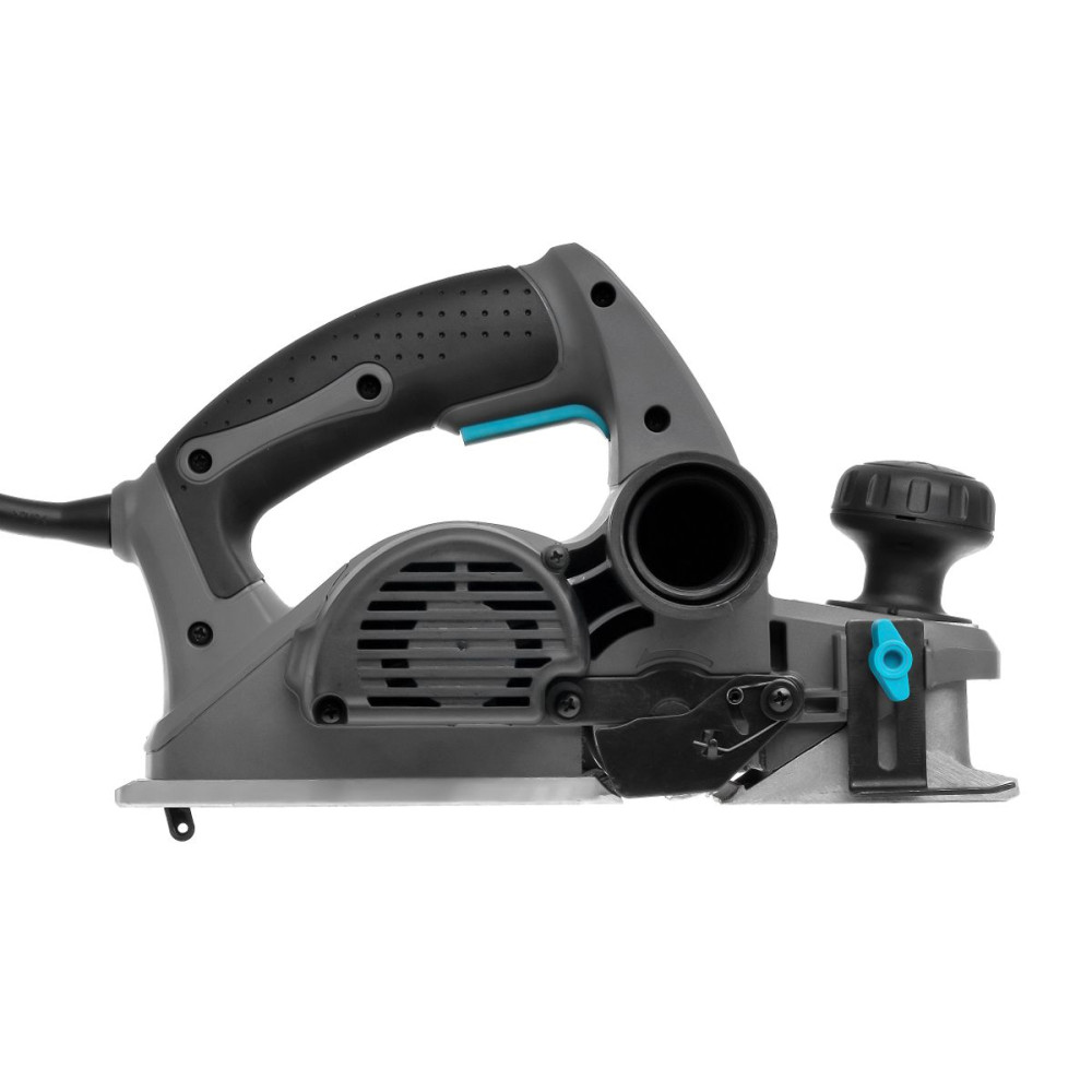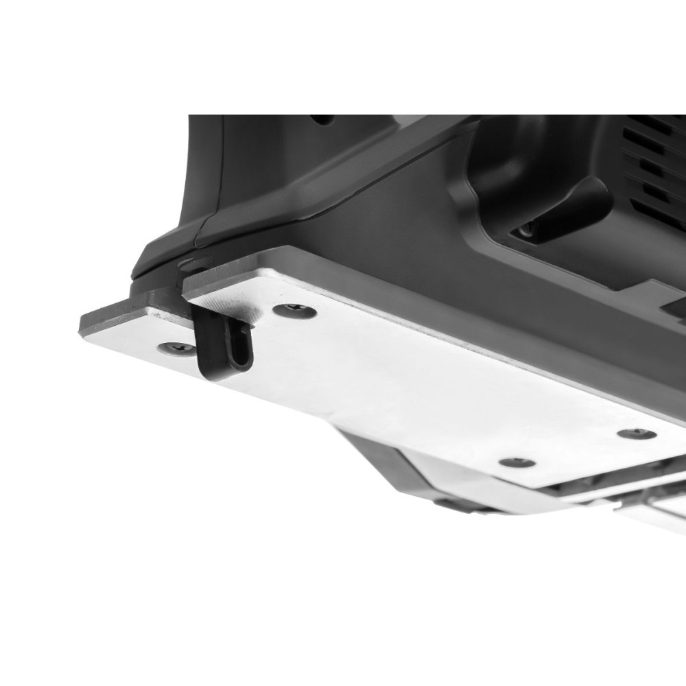 - Мощный эргономичный рубанок с литым основанием, пяткой безопасности, эластомерной накладкой и широкой кнопкой управления для удобства работы оснащен двумя ножами 82 мм.