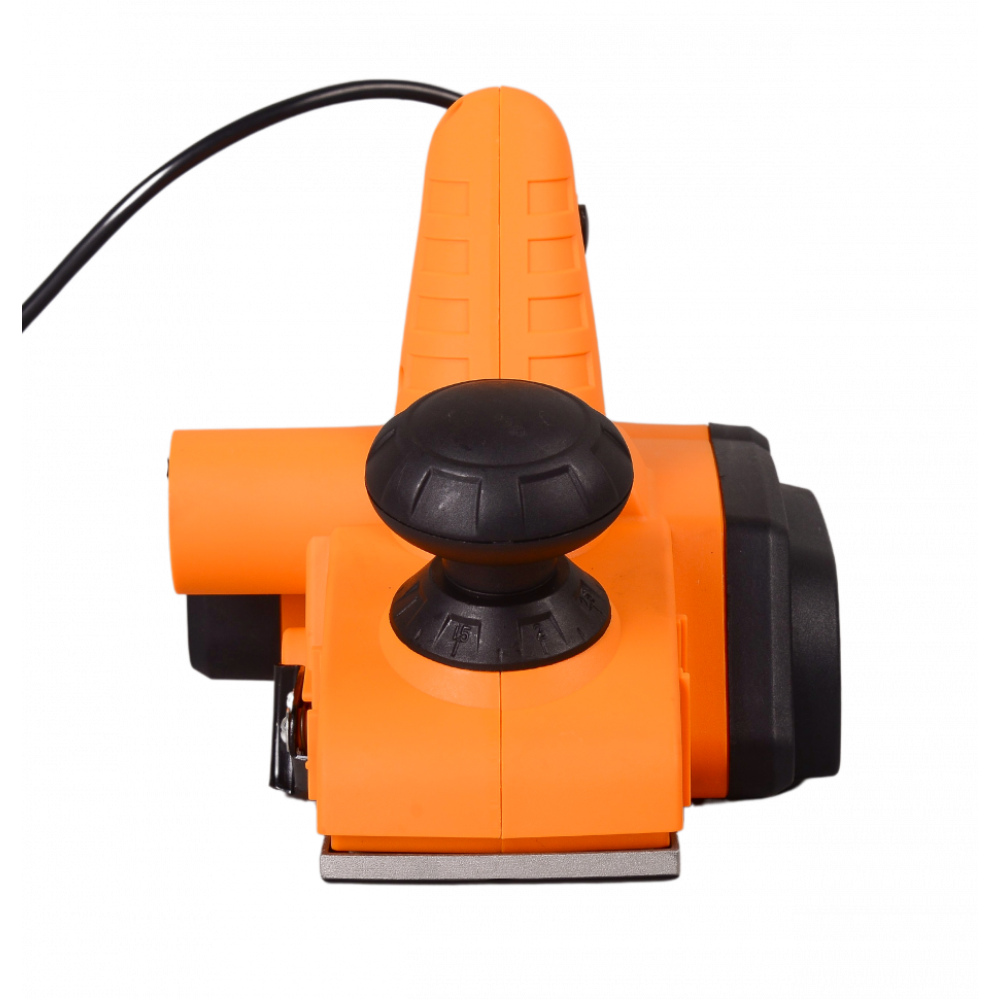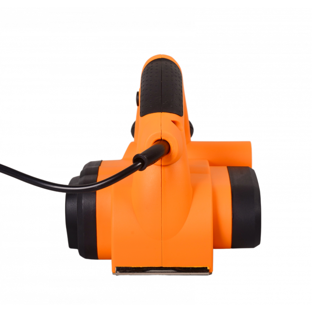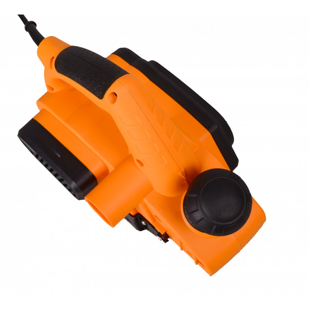 Для поддержания рабочего места в чистоте, инструмент оснащен патрубком для отвода пыли. С помощью широкой рукоятки можно не только крепко удерживать инструмент во время работы, но и регулировать глубину строгания от 0 до 3 мм. Для удобства работы продолжительное время на рукоятке предусмотрен фиксатор пусковой клавиши. Воздушное охлаждение исключает возможность перегрева в течение работы.
