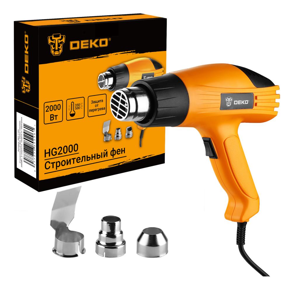 - Строительный фен DEKO HG2000 для различных видов работ: размягчение краски, герметизирующего раствора; размягчение клеящих веществ и удаление наклеек; запрессовка упаковочной пленки; работа с термоусадочными рукавами; изготовление поделок (например, тиснение).