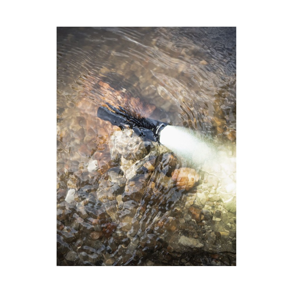- Полная защита от воды, грязи и пыли по стандарту IP68 — фонарь продолжает работать даже на глубине 25 метров до 5 часов. Выдерживает падение с 10 этажа.