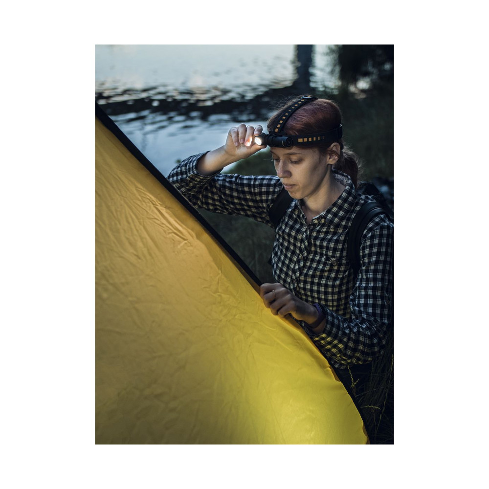 - Удобное налобное крепление с двумя мягкими эластичными лентами, легким держателем из композитного материала и силиконовым кольцом для дополнительной фиксации. Ленты надежно фиксируют фонарь, не натирают кожу и не оставляют следов. Фонарь устанавливается одним движением, размер налобного крепления регулируется.