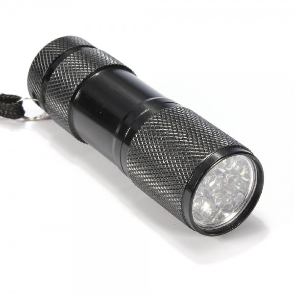 - УФ-фонарь 9 диодов 395нм - ультрафиолетовый фонарь на 9-ти светодиодах, позволяющий подсвечивать вещи, видимые только в ультрафиолетовом диапазоне излучения (395нм): защитные элементы на денежных купюрах, невидимые глазом надписи и т.п.