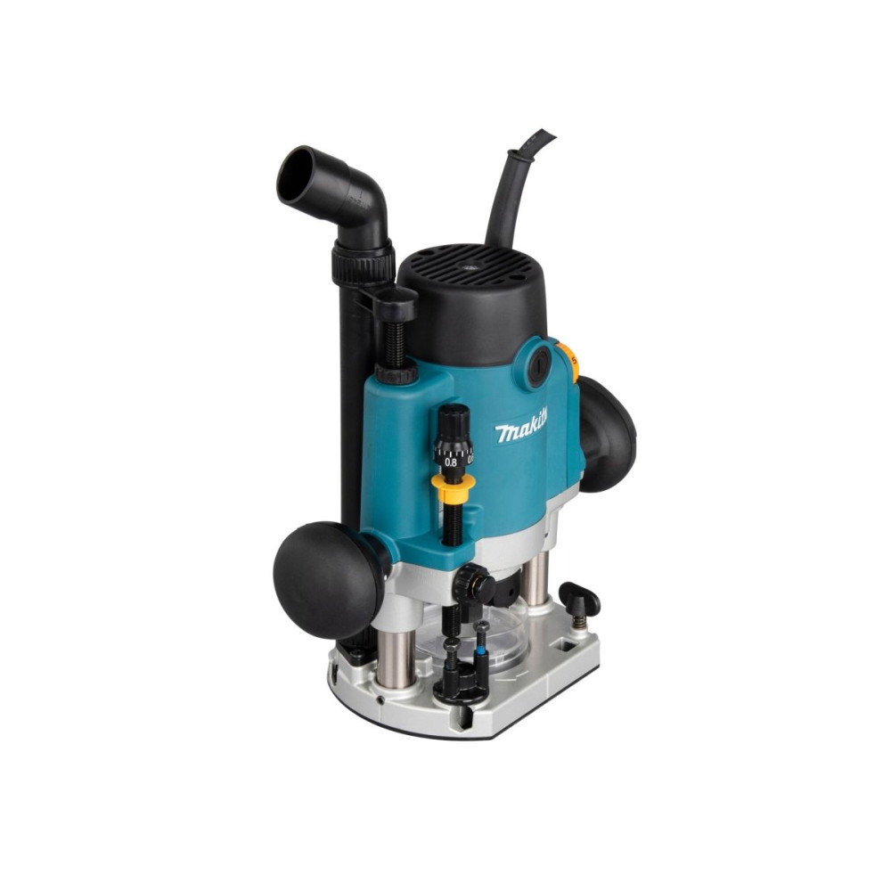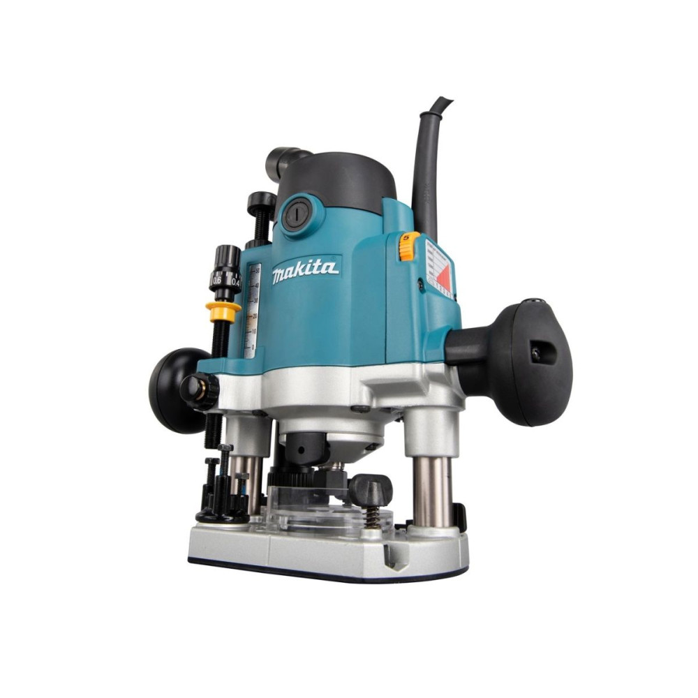 Мощный фрезерный станок с очень компактной конструкцией и простым управлением, разработанный в соответствии со стандартом EN62841-2-17. Крышка подшипника из прочного литого под давлением алюминия. Адаптер всасывающего устройства, установленный над или под корпусом. Ограничитель глубины устанавливается нажатием кнопки или отдельным механизмом точной регулировки. Оборудован триггерным переключателем. Аварийный выключатель с блокировкой для непрерывной работы. Направляющие рукоятки с резиновым покрытием для надежного захвата и удобства работы. Полная электроника с контролем скорости для адаптации к обрабатываемому материалу. Функция плавного запуска. Функция защиты от перезапуска.