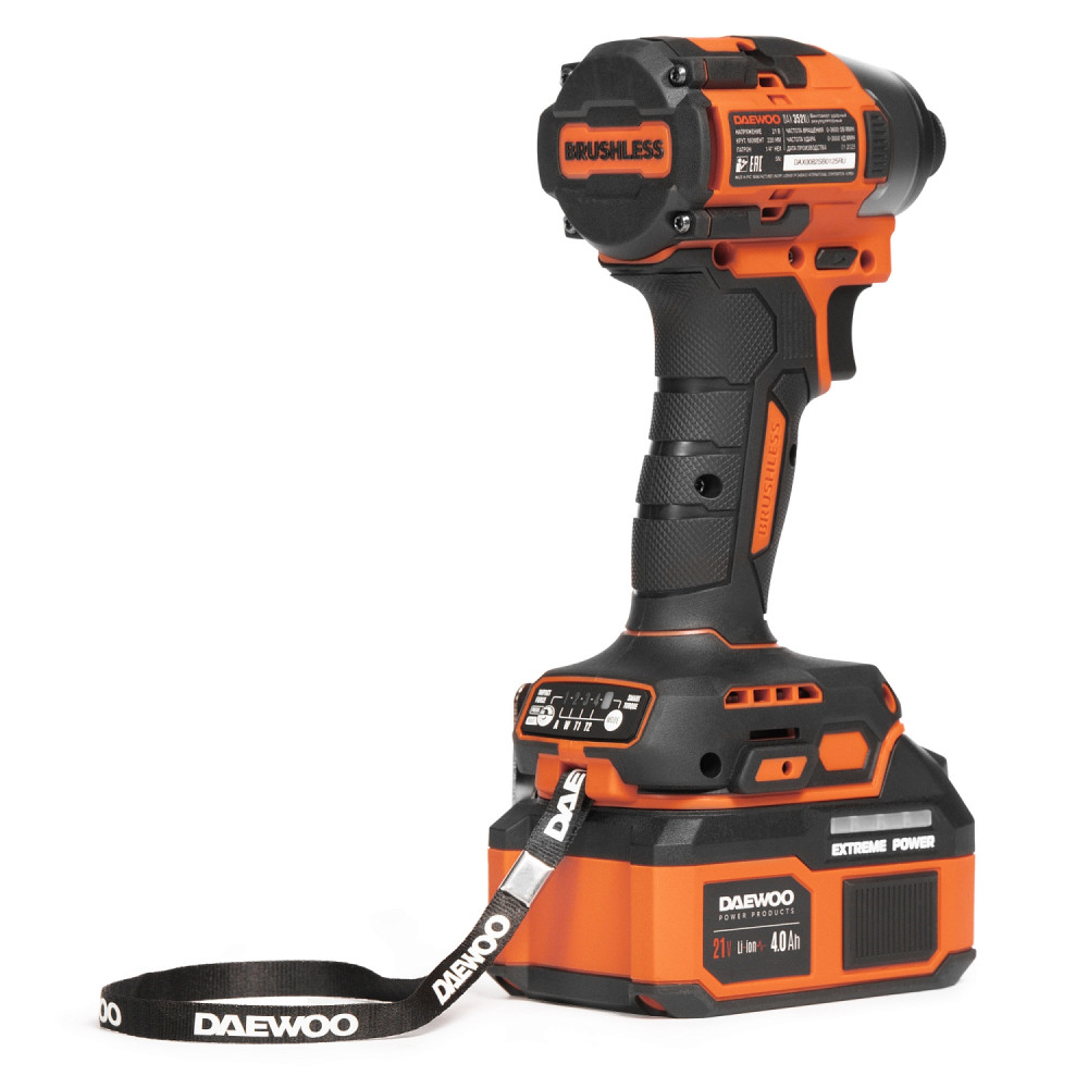- 21В Li-ion единая платформа. Модель совместима со всеми аккумуляторными инструментами и батареями DAEWOO линейки 21В.