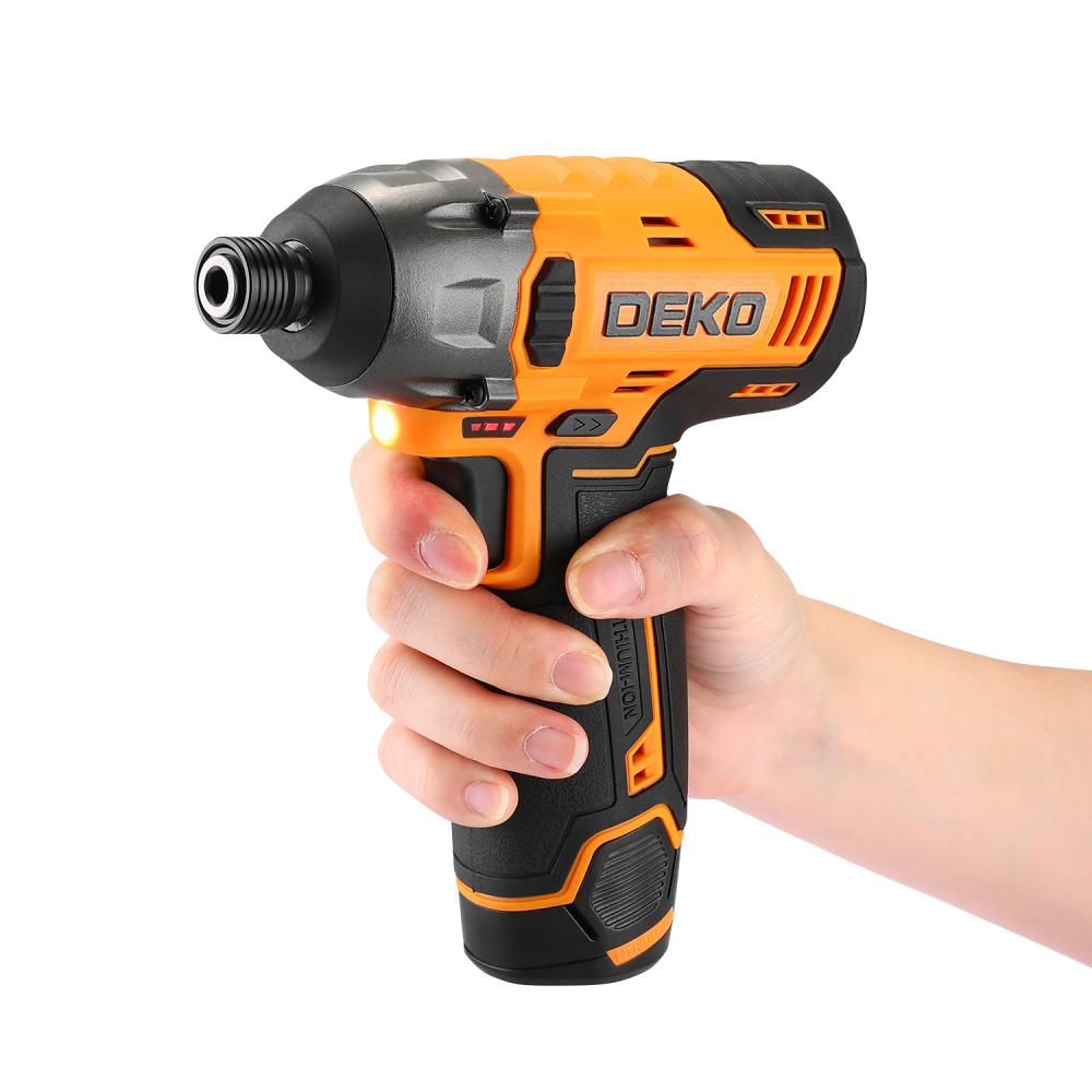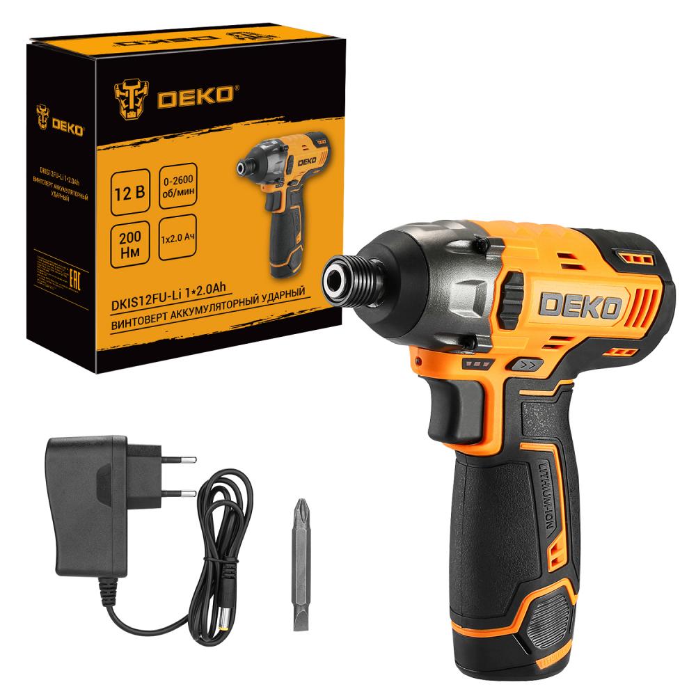 - Винтоверт аккумуляторный ударный DEKO DKIS12FU-Li 1*2.0Ah предназначен для выполнения работ по заворачиванию и выкручиванию шурупов или гаек из различных материалов.