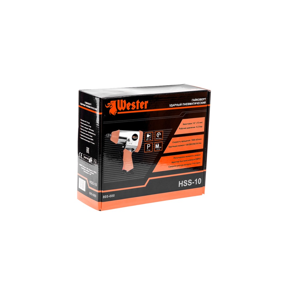 WESTER HSS-10 - пневматический гайковерт с ударным механизмом. Используется для откручивания и закручивания гаек на автомобильных дисках. Хвостовик 1/2'' (13мм).