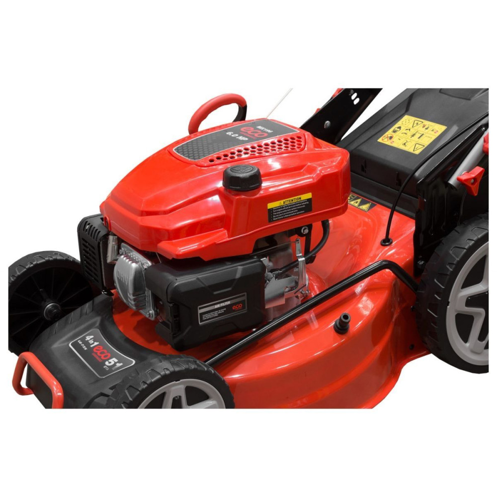 Самая мощная в линейке газонокосилка, оснащенная двигателем ECO MX196 с мощностью 6 л.с стандарта EURO5. Двигатель оснащен автоматической воздушной заслонкой, которая облегчает пуск двигателя. В отличие от моделей без автоматической заслонки нет необходимости подкачивать топливо перед запуском.