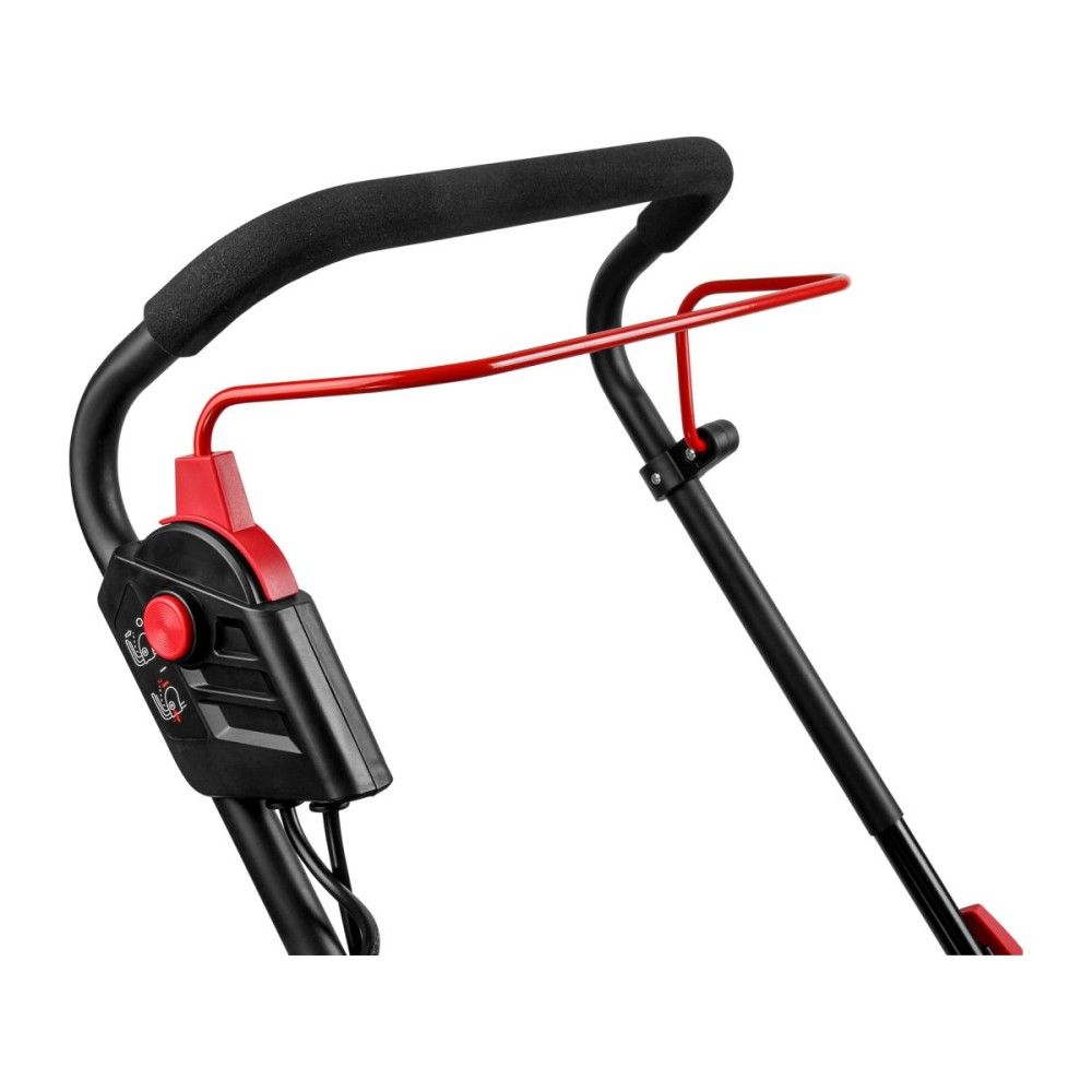 Наличие ручки для переноски облегчает процесс перемещения газонокосилки.