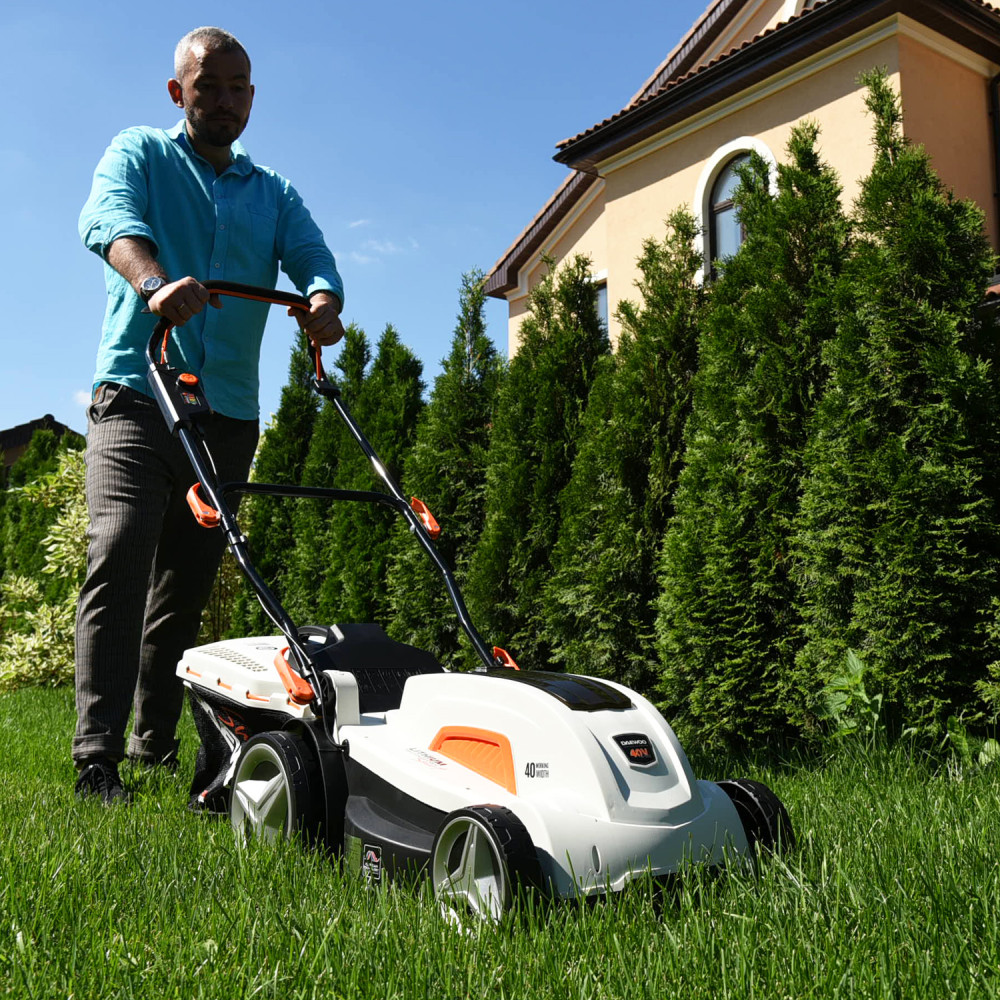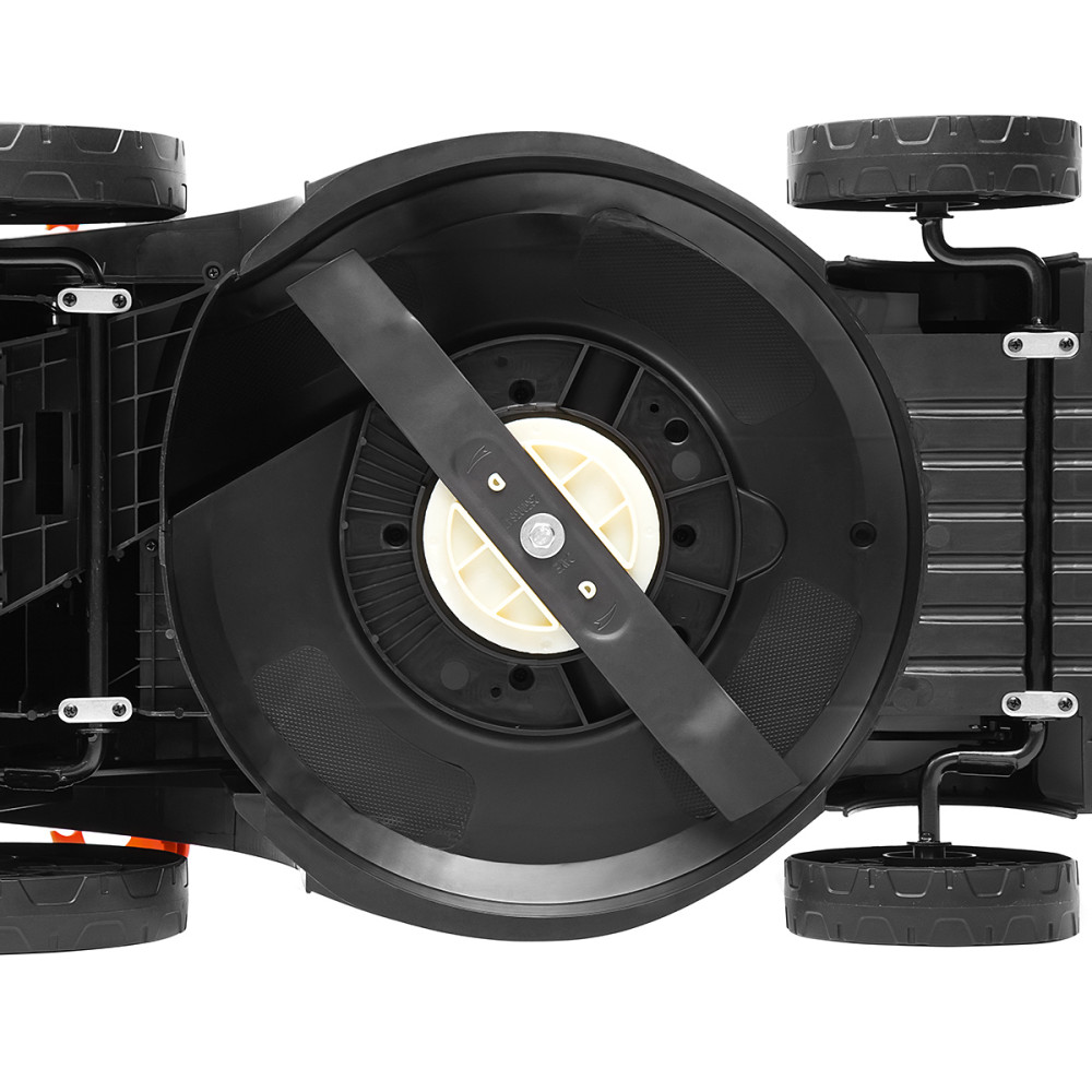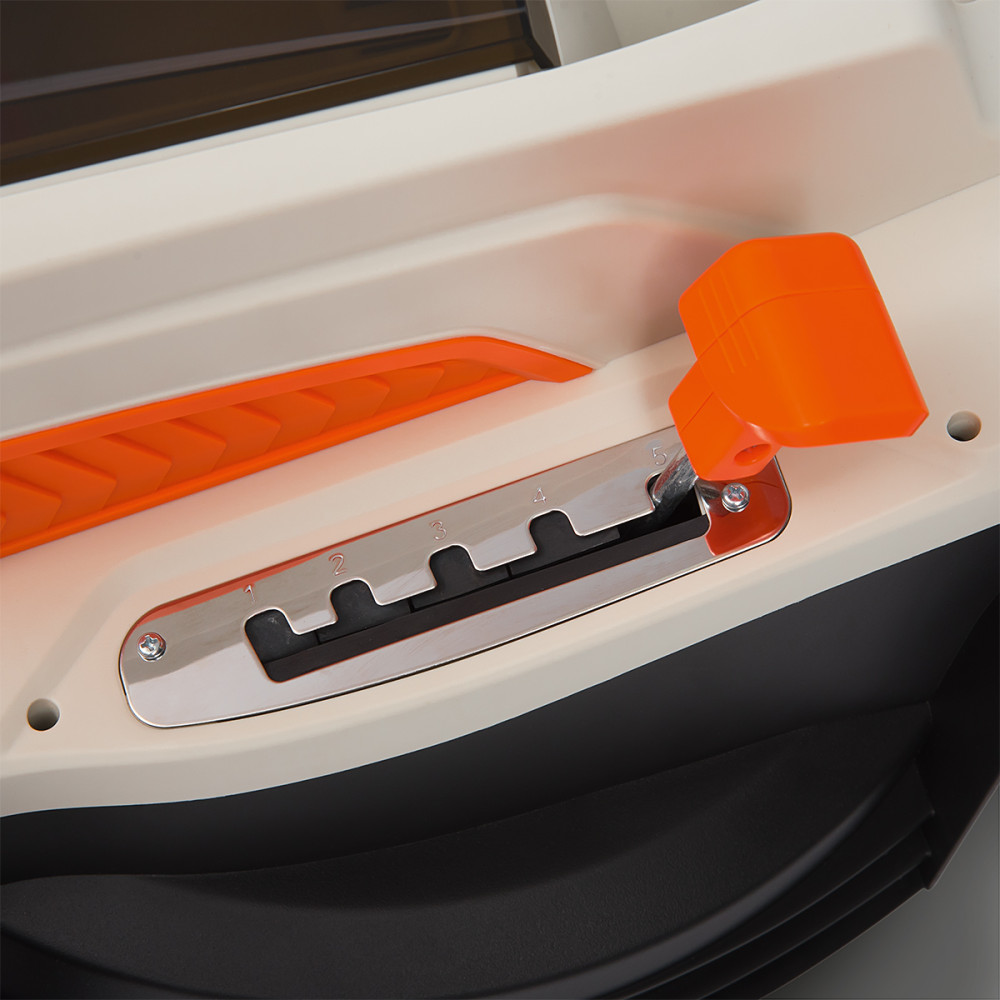 - Центральная регулировка высоты среза. Настройка режущей деки производится в одно движение - путем смещения рычага, удобно расположенного на панели управления, который изменяет высоту подъема колес.
