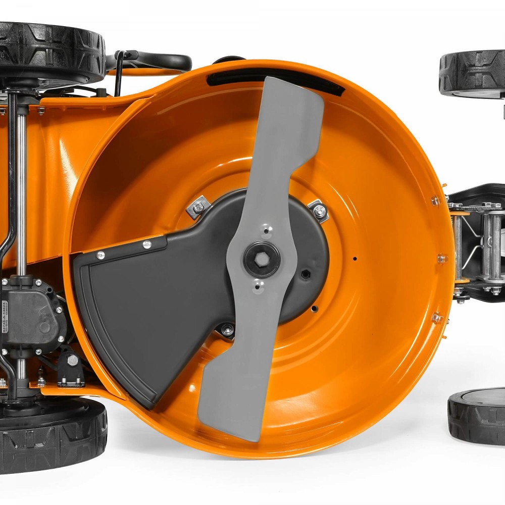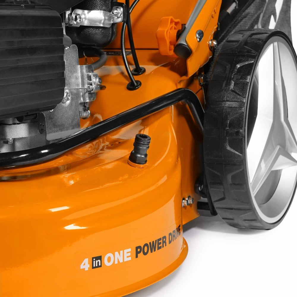- Функции 4-в-1. Кошение травы, сбор в травосборник, боковой выброс и мульчирование. Конструкция газонокосилки позволяет быстро и без применения специальных инструментов изменить режим работы для решения любых задач по уходу за газоном.