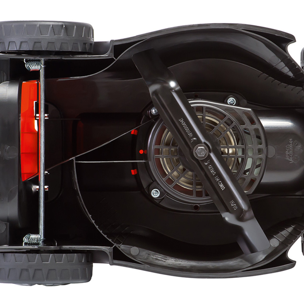 ✔ Нож аэродинамической формы CyclonEffect создает мощный воздушный поток, который приподнимает стебли растений и направляет срезанную траву в камеру травосборника.