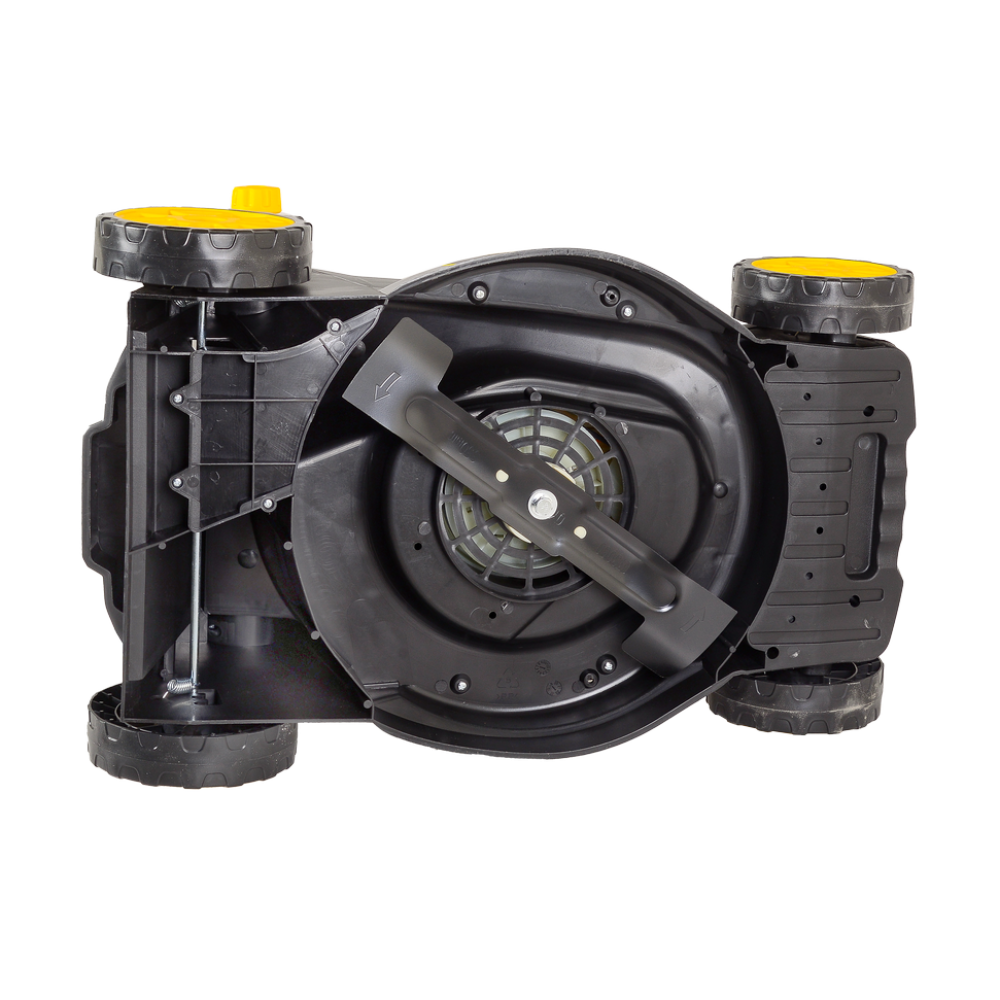 - Электрогазонокосилка оснащена надёжным электродвигателем мощностью 1400 Вт, который приводит в движение прочный стальной нож. Все это закрыто в лёгкий и прочный пластиковый корпус.