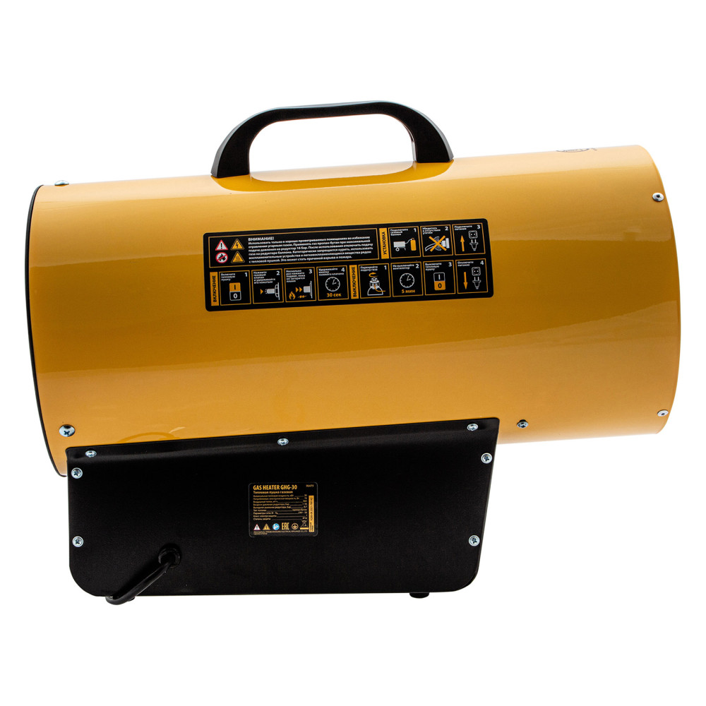 Газовая тепловая пушка Denzel GHG-30 96479 мощностью 30 кВт работает на смеси пропан-бутан и выдает тепловой поток со скоростью 900 куб. м/ч. Используется для обогрева складов, цехов, гаражей, теплиц и других нежилых помещений площадью до 300 кв. м. Будет полезна на строительных площадках и в производственных помещениях.