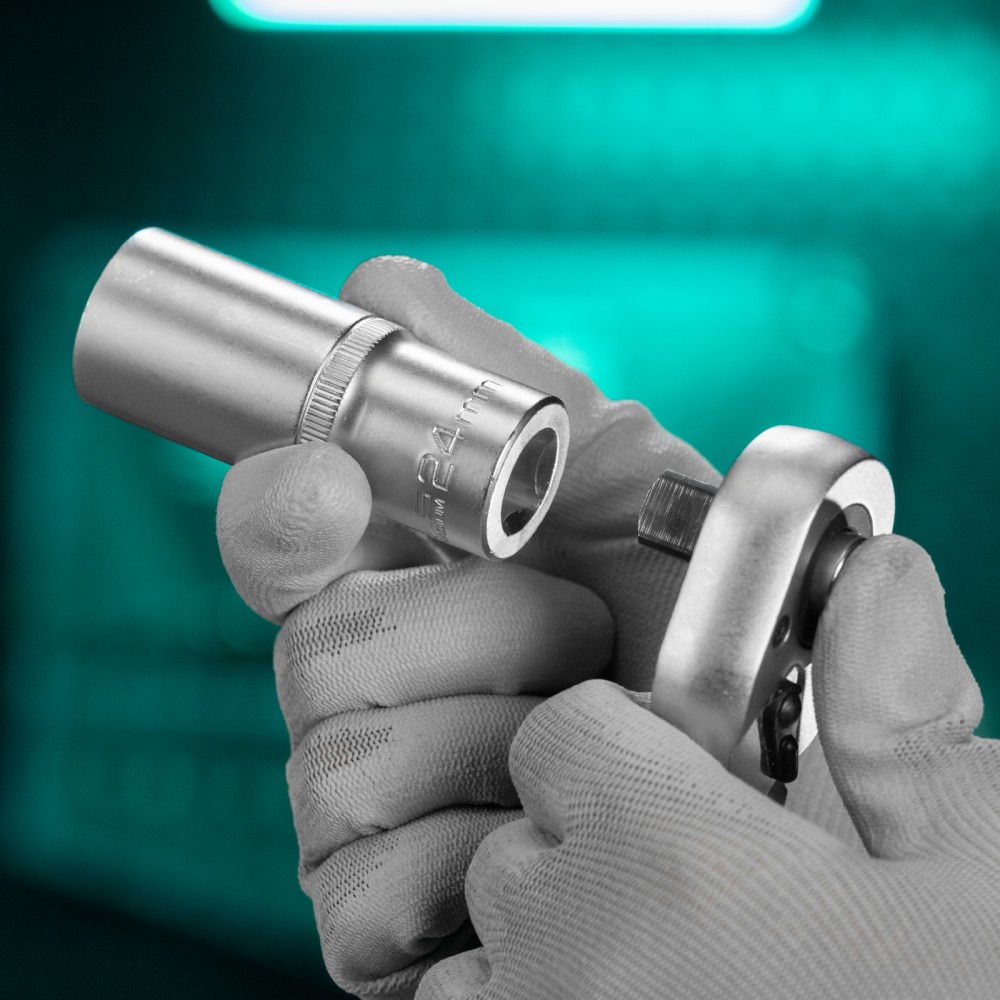 Удлиненная 6-гранная торцевая головка Stels 13883 из стали CrV, размером 24 мм, под квадрат 1/2", предназначена для монтажа и демонтажа болтовых соединений. Удлиненный профиль позволяет работать в труднодоступных местах, а также закручивать и откручивать крепежи на высоких шпильках.ПреимуществаПрочность и долговечность — головка изготовлена из износостойкой хромованадиевой стали.Устойчивость к нагрузкам — твердость материала рабочей части составляет 42 HRC.Аккуратная работа — динамический профиль обеспечивает увеличенную площадь контакта с деталью, сводя к минимуму риск повреждения граней болтов, гаек и других крепежей.Антикоррозионная защита — на головку нанесено матовое хромовое покрытие.Комфортная эксплуатация — благодаря специальным насечкам головка не выскальзывает даже из замасленных рук.