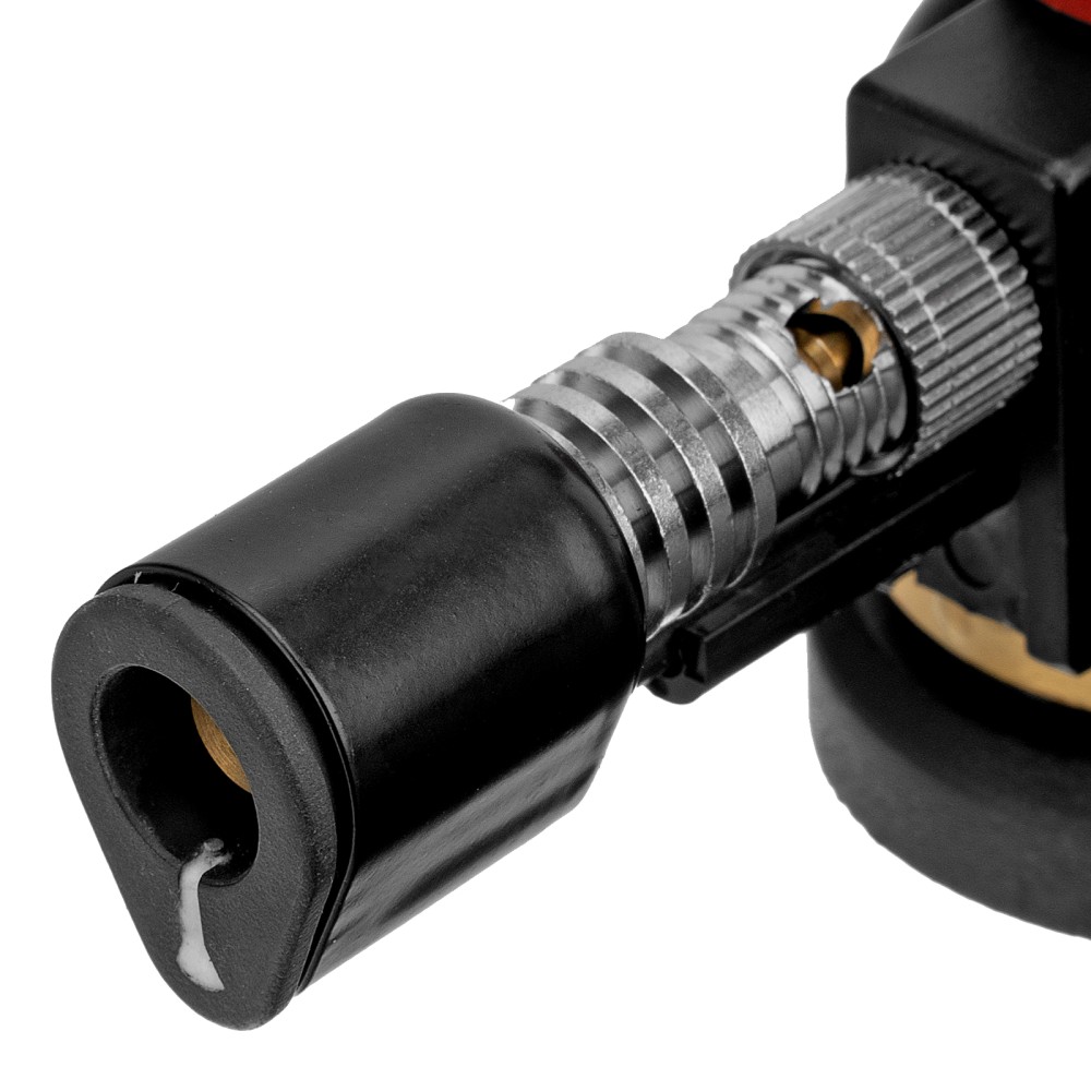 Горелка на бутановый баллон Matrix 91424 с пьезоподжигом предназначена для профессионального использования и применяется для нагрева и пайки деталей. Температура пламени достигает 1300 °C, что позволяет эффективно решать поставленные задачи. Горелка будет полезна в автомастерской, а также дома, на даче или в походе. ПреимуществаБыстрая установка — благодаря цанговому зажиму горелка надежно фиксируется на большинстве газовых баллонов (пропан/бутан).Простое использование — поворотная ручка позволяет регулировать мощность пламени, пьезоподжиг избавляет от необходимости пользоваться зажигалкой или спичками.Функциональность — горелка эффективно работает в наклонном положении под любым углом.