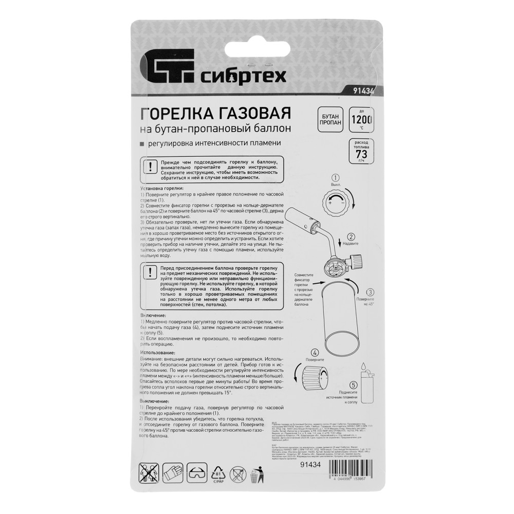 Газовая горелка Сибртех 91434 с диаметром сопла 25 мм предназначена для установки на пропан-бутановый баллон. Используется для нагрева труб и различных деталей, пайки, розжига огня без химических средств. Горелка будет полезна дома, в гараже, на даче или пикнике.ПреимуществаЭффективное решение поставленных задач — температура пламени достигает 1200 °C, сопло диаметром 25 мм позволяет нагреть большую площадь.Регулировка подачи газа — можно увеличить или уменьшить интенсивность пламени.Быстрая установка — цанговое соединение позволяет зафиксировать горелку практически на любом баллоне с газом (пропан-бутан).