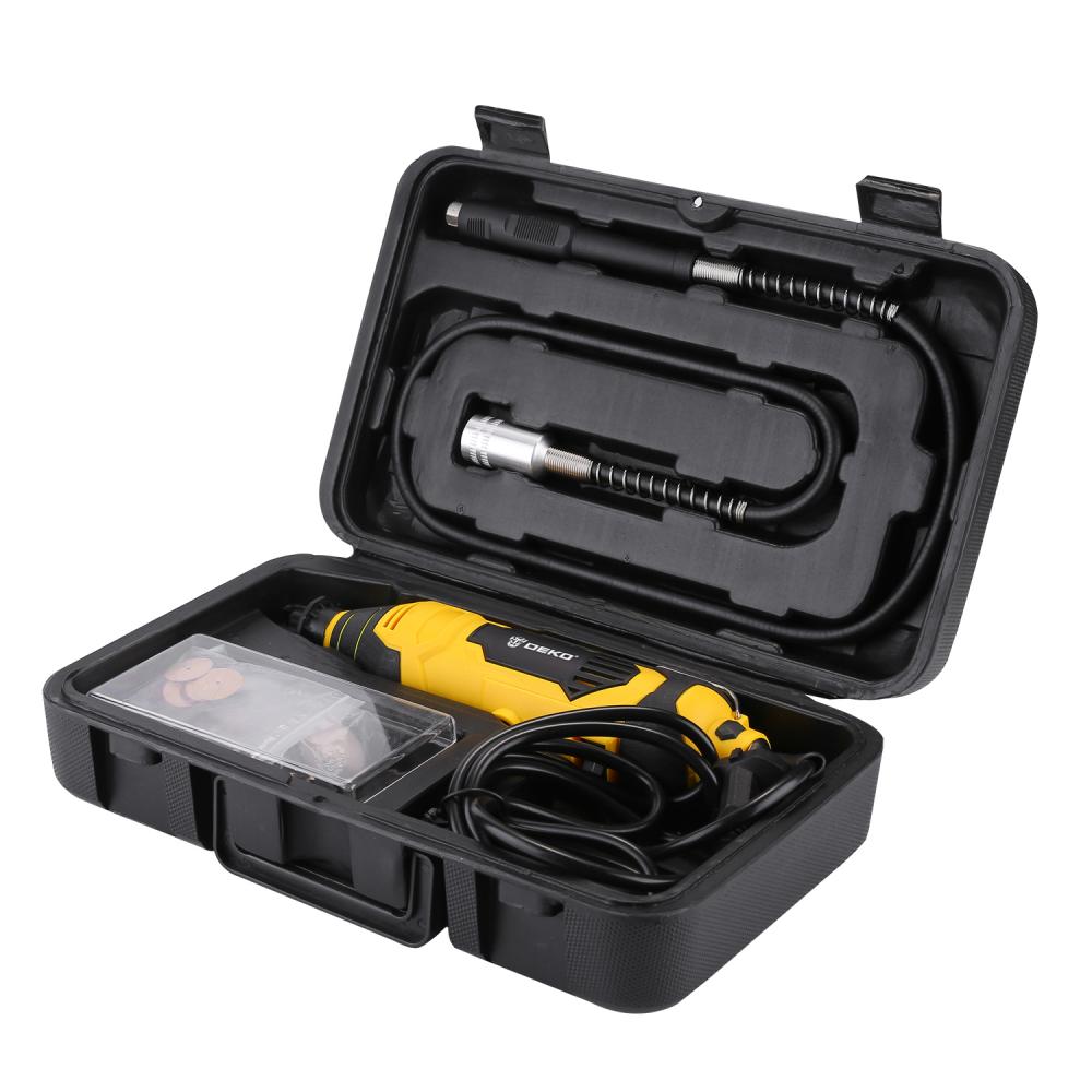 - Электрический гравер с регулировкой скорости 200Вт Deko DKRT200E идеально подходит для шлифования и полировки небольших поверхностей благодаря регулировке скорости и различным аксессуарам.