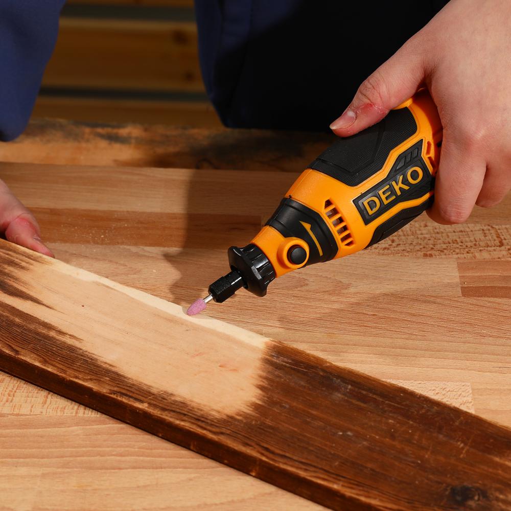 - Гравер электрический DEKO ZKRT200 идеально подходит для шлифования и полировки небольших поверхностей благодаря регулировке скорости и различным аксессуарам.