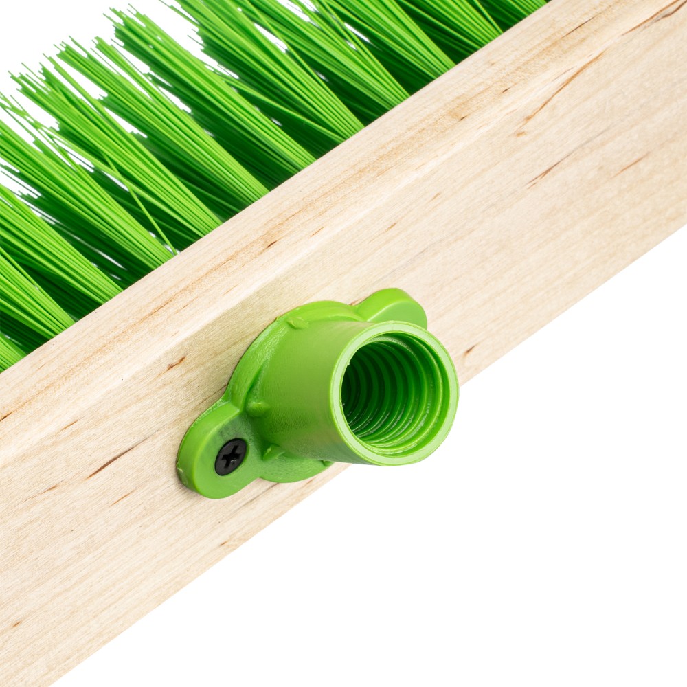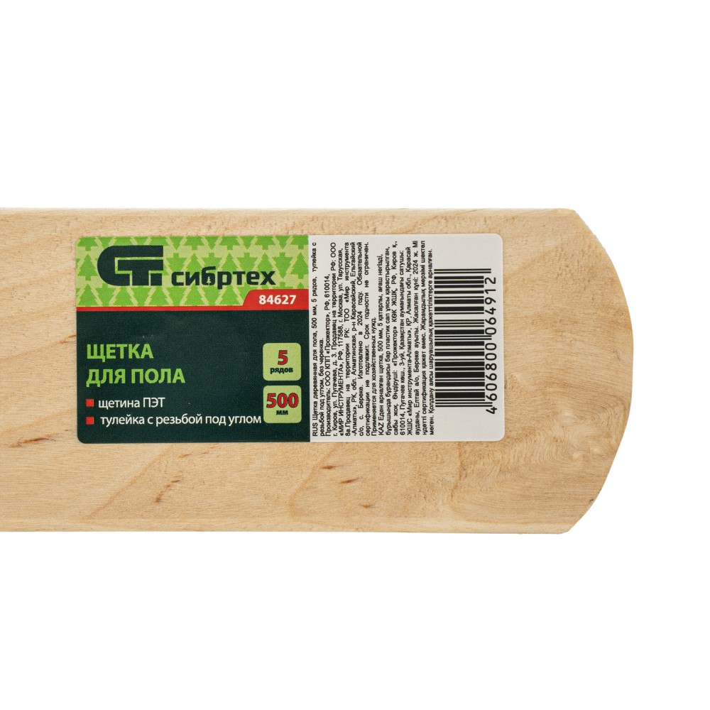 Деревянная щетка для пола Сибртех 84627 длиной 500 мм, с тулейкой с резьбой под углом, без черенка, имеет густую пятирядную щетину и предназначена для уборки как внутри, так и вне помещений. Тщательно сметает пыль и мусор с пола, а также листву и мусор с дорожек, площадок, тротуаров и лестниц. Рабочая часть длиной 500 мм удобна для уборки участков большой площади. Черенок приобретается отдельно, рекомендуемая модель — 68416.ПреимуществаПрочность и долговечность — основание выполнено из твердой древесины, синтетическая щетина устойчива к истиранию.Надежность — пучки щетины крепко зафиксированы и не выпадают из колодки во время уборки.Эргономичность — тулейка, расположенная под углом, обеспечивает удобное положение черенка.Удобная фиксация черенка — тулейка имеет резьбовое соединение.