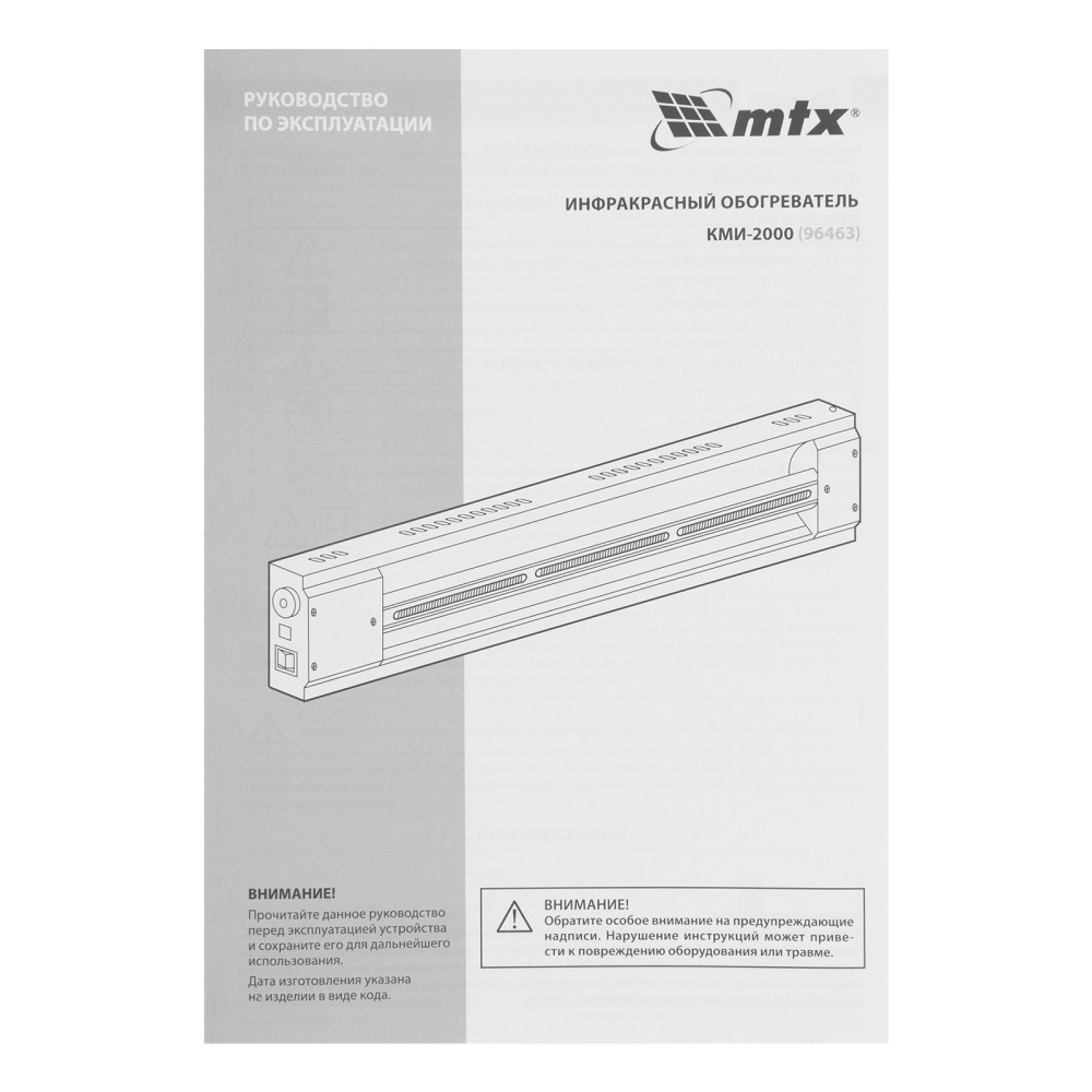Инфракрасный обогреватель MTX КМИ-2000 96463 с плавной регулировкой мощности до 2000 Вт, работает от сети 230 В и предназначен для обогрева бытовых помещений площадью до 20 м2. Обеспечивает комфортный микроклимат, поскольку не сушит воздух и не сжигает пыль. Инфракрасные лучи нагревают окружающие поверхности, а не воздух, что позволяет снизить затраты на электроэнергию.