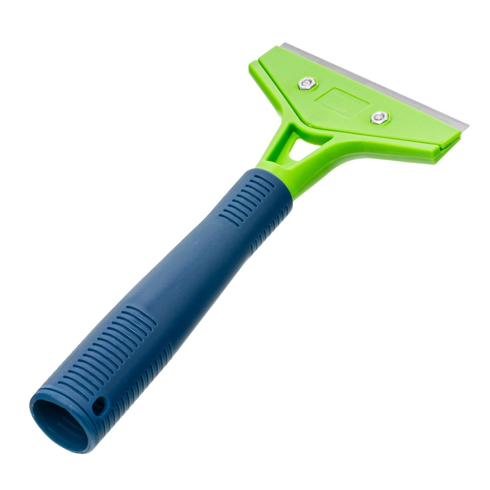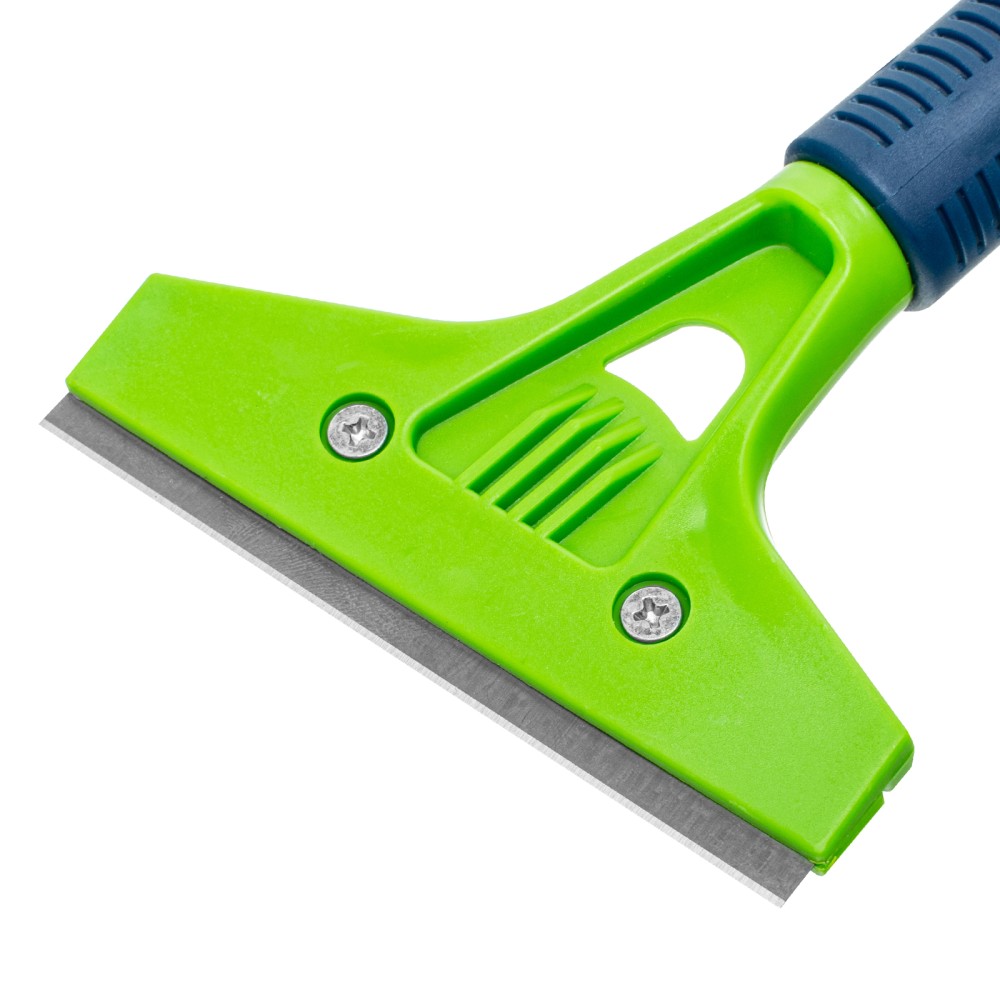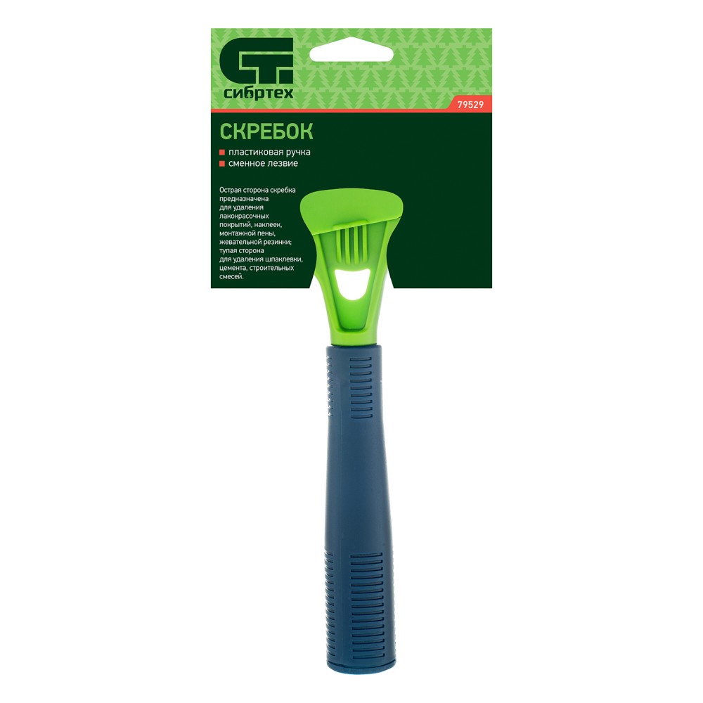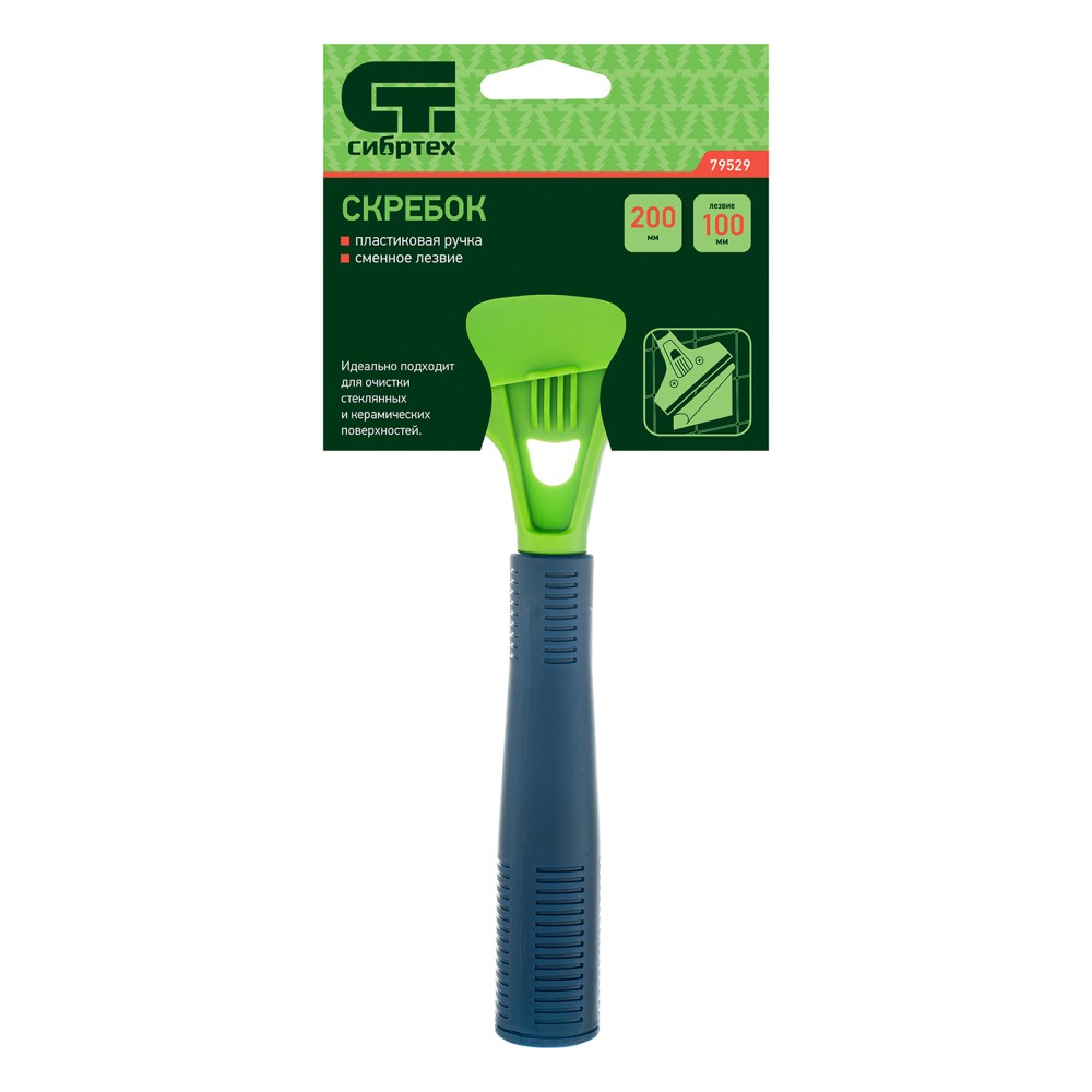 Скребок Сибртех 79529 длиной 200 мм, с лезвием шириной 100 мм и пластиковой рукояткой, — ручной инструмент для удаления старых лакокрасочных покрытий и загрязнений с керамических, стеклянных, металлических и прочих гладких поверхностей. Имеет двустороннее лезвие, острая сторона которого облегчает снятие остатков краски и лака, монтажной пены, удаление наклеек и жевательной резинки. Тупая сторона позволяет использовать скребок для удаления герметика, строительных смесей, шпаклевки и цемента. Изношенное полотно можно заменить. Скребок пригодится во время ремонта, а также будет полезен в быту.ПреимуществаПрочность и высокий ресурс — лезвие изготовлено из углеродистой стали.Надежность — лезвие крепко зафиксировано в корпусе, не расшатывается и не выпадает во время работы.Комфортная работа — эргономичная пластиковая рукоятка удобно ложится в руку.Безопасное хранение и транспортировка — лезвие закрывается специальной крышкой.