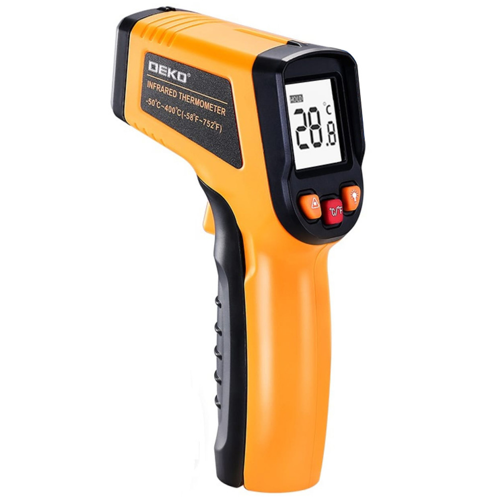 - Инфракрасный пирометр DEKO CWQ02 предназначен для измерения температуры бесконтактным путем, с помощью наведения точечного лазера на объект.