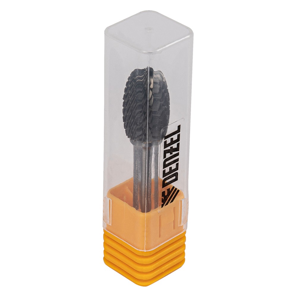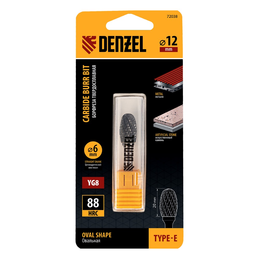 Твердосплавная борфреза по металлу Denzel 72038 с овальной режущей частью (тип E), диаметром 12 мм, предназначена для шлифовки стальных, бронзовых, медных, латунных, чугунных, титановых поверхностей. Также эффективна для обработки искусственного камня и металлокерамики. Овальная рабочая часть позволяет зачищать сварные швы, удалять заусенцы, снимать фаски, обрабатывать закругленные углы. С помощью борфрезы можно восстановить утратившую первоначальный вид гравировку. Режущая оснастка устанавливается на дрель или прямошлифовальную машину.ПреимуществаЭффективная работа с особо прочными материалами — рабочая часть изготовлена из сплава ВК8 твердостью 69-72 HRC.Высокая производительность — специальные перекрестные насечки-стружколомы обеспечивают эффективное удаление продуктов обработки.Универсальность — цилиндрический хвостовик диаметром 6 мм совместим с большинством патронов инструментов.Удобное хранение и транспортировка — борфреза поставляется в практичном пластиковом кейсе.