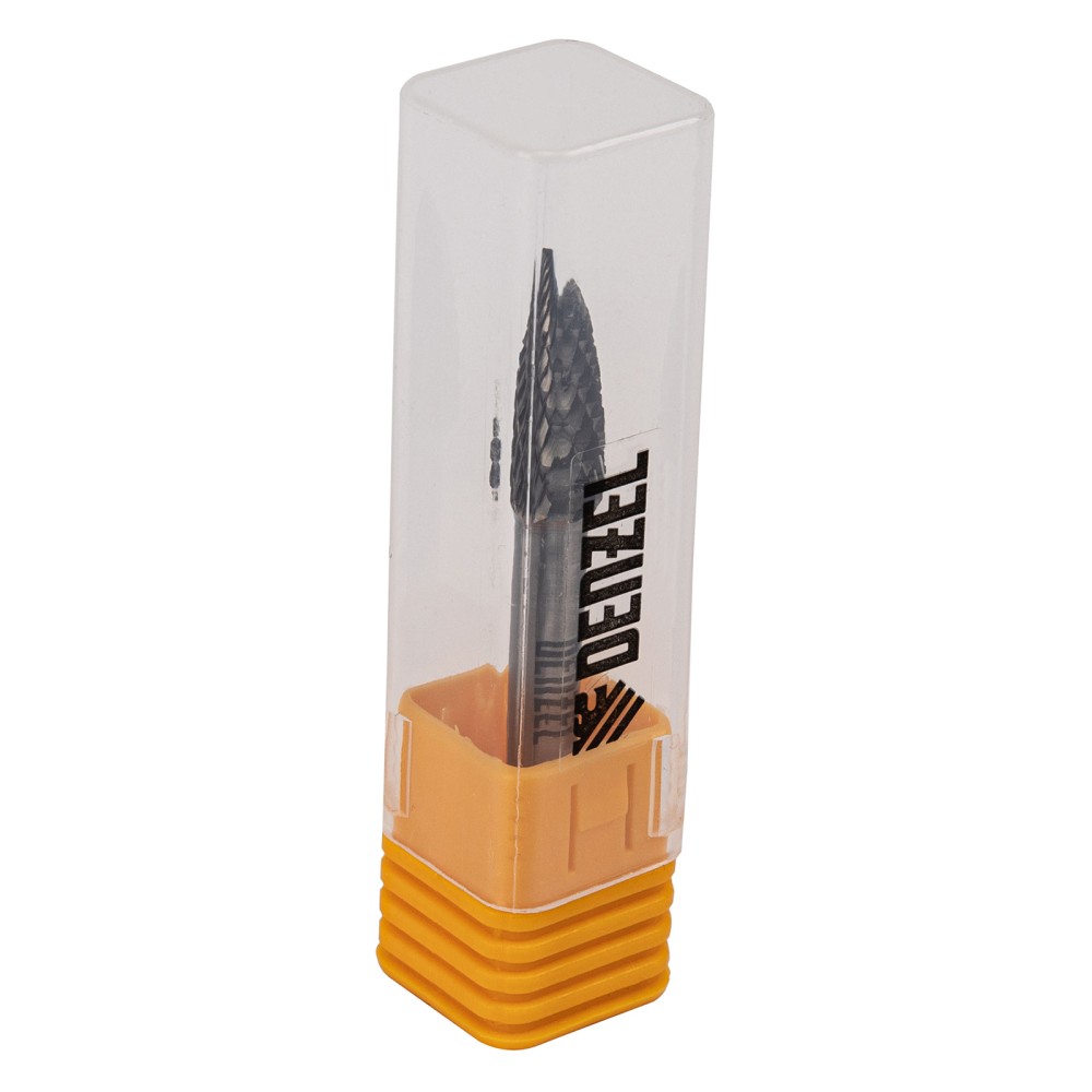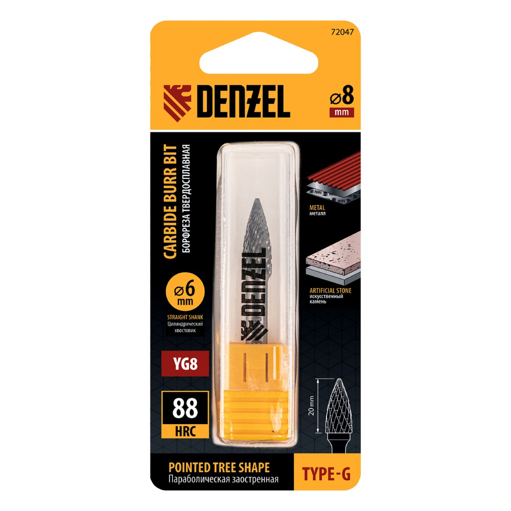 Твердосплавная борфреза по металлу Denzel 72047 с параболической заостренной рабочей частью (тип G), диаметром 8 мм, — оснастка для дрели и прямошлифовальной машины. Предназначена для выполнения работ по закаленной и нержавеющей стали, чугуну, бронзе, меди, латуни, титану. Также позволяет обрабатывать искусственный камень и металлокерамику. Заостренная режущая часть оптимальна для шлифовки радиусных поверхностей сложной формы, удаления заусенцев в узких отверстиях, формирования точных углов.ПреимуществаЭффективная работа с особо прочными материалами — рабочая часть изготовлена из сплава ВК8 твердостью 69-72 HRC.Высокая производительность — специальные перекрестные насечки-стружколомы обеспечивают эффективное удаление продуктов обработки.Универсальность — цилиндрический хвостовик диаметром 6 мм совместим с большинством патронов инструментов.Удобное хранение и транспортировка — борфреза поставляется в практичном пластиковом кейсе.