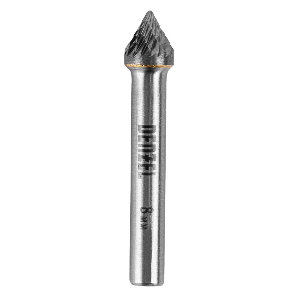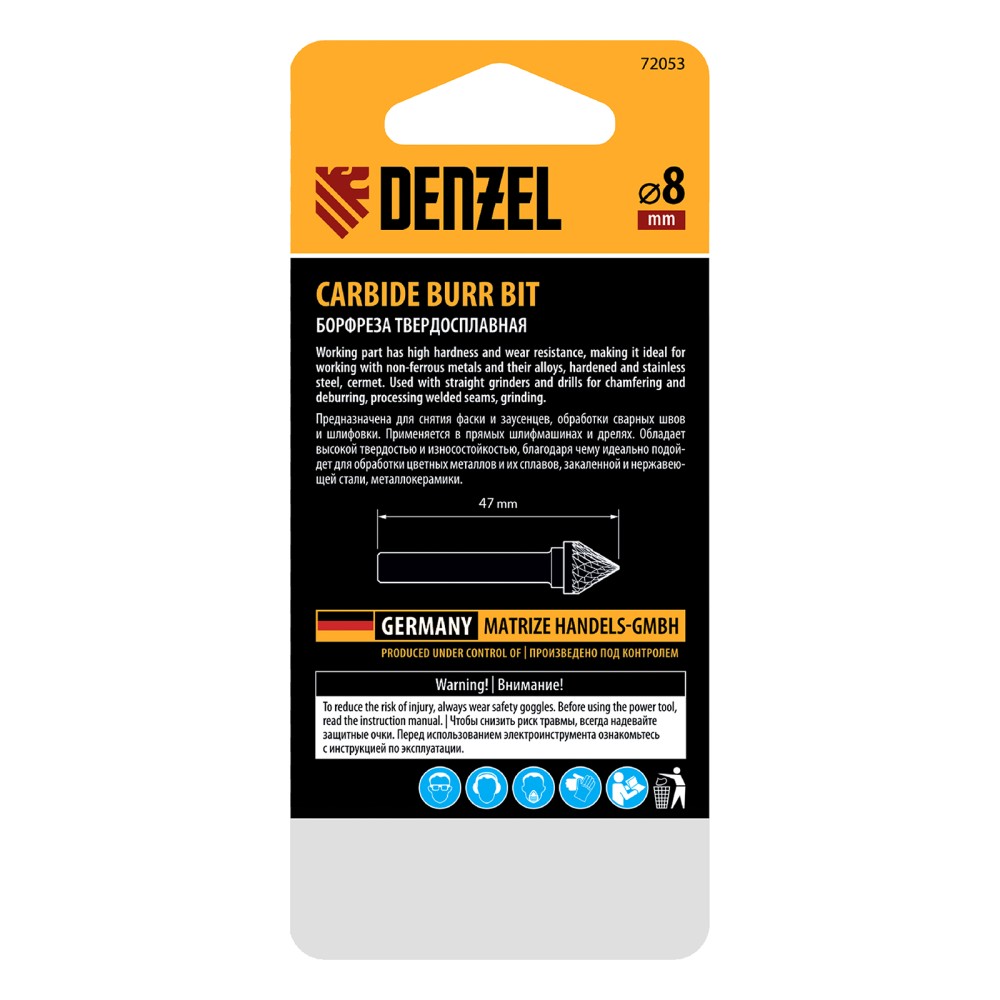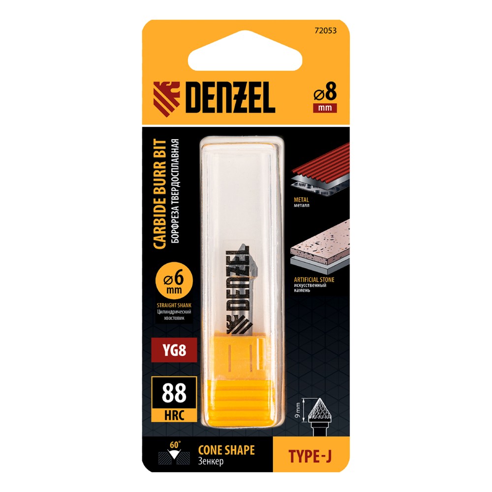 Твердосплавная борфреза по металлу Denzel 72053 с рабочей частью-зенкером с вершиной 60° (тип J), диаметром 8 мм, устанавливается на дрель или прямошлифовальную машину. Используется для обработки закаленной и нержавеющей стали, латуни, бронзы, меди, чугуна, титана, а также металлокерамики и искусственного камня. Оптимальна для снятия фасок и заусенцев, обработки кромок, угловых пазов, краев отверстий.ПреимуществаЭффективная работа с особо прочными материалами — рабочая часть изготовлена из сплава ВК8 твердостью 69-72 HRC.Высокая производительность — специальные перекрестные насечки-стружколомы обеспечивают эффективное удаление продуктов обработки.Универсальность — цилиндрический хвостовик диаметром 6 мм совместим с большинством патронов инструментов.Удобное хранение и транспортировка — борфреза поставляется в практичном пластиковом кейсе.