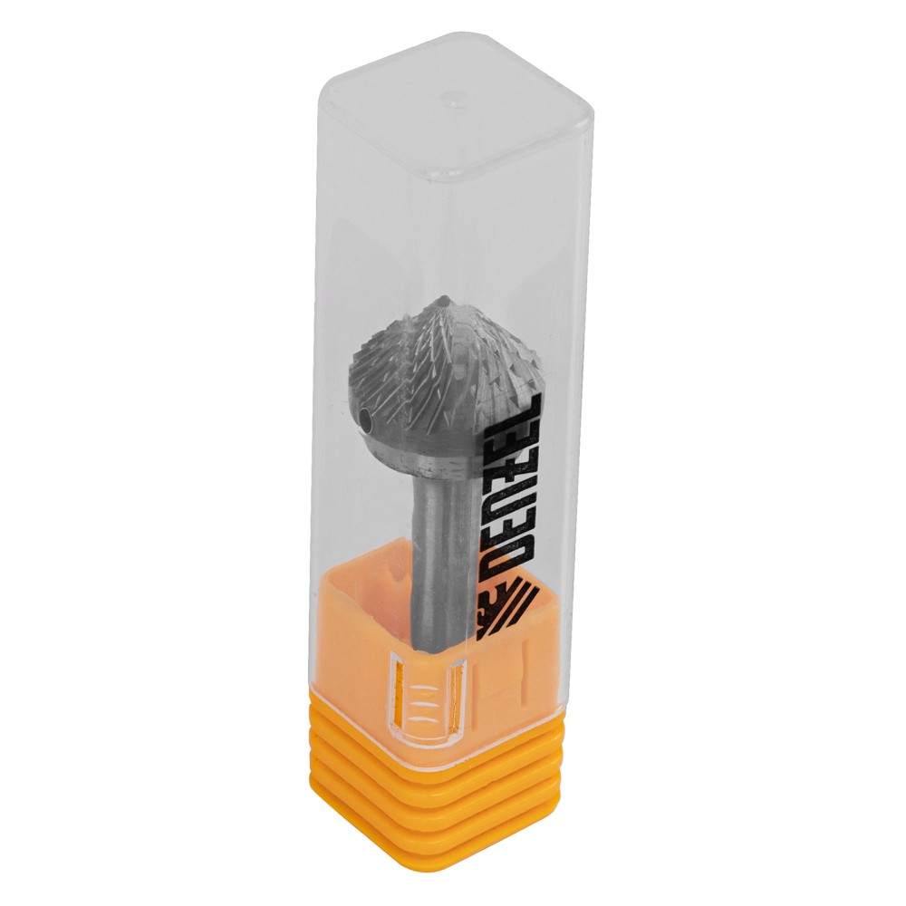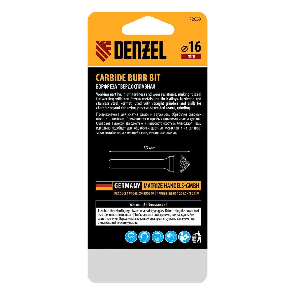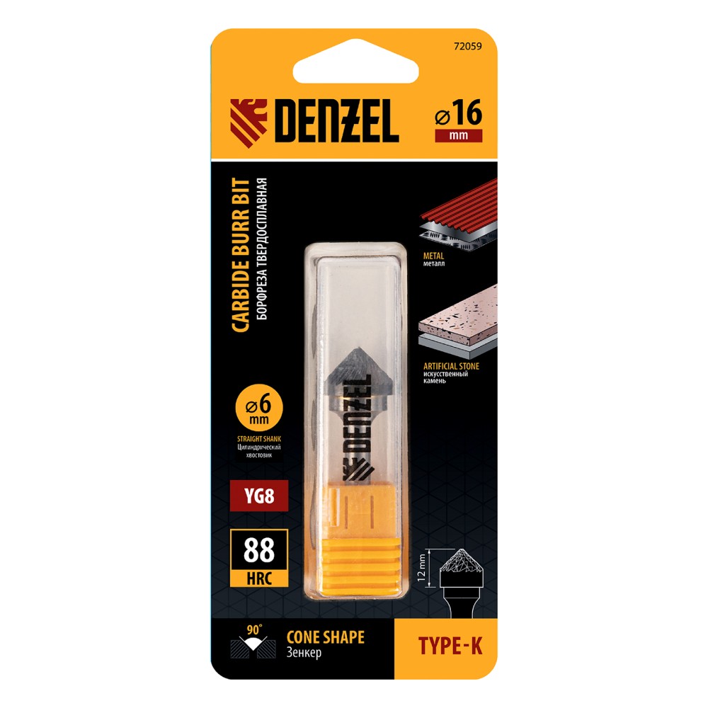 Твердосплавная борфреза по металлу Denzel 72059 с рабочей частью-зенкером с вершиной 90° (тип K), диаметром 16 мм, устанавливается на дрель или прямошлифовальную машину. Используется для обработки закаленной и нержавеющей стали, латуни, бронзы, меди, чугуна, титана, а также металлокерамики и искусственного камня. Оптимальна для снятия фасок и заусенцев, обработки кромок, угловых пазов, краев отверстий.ПреимуществаЭффективная работа с особо прочными материалами — рабочая часть изготовлена из сплава ВК8 твердостью 69-72 HRC.Высокая производительность — специальные перекрестные насечки-стружколомы обеспечивают эффективное удаление продуктов обработки.Универсальность — цилиндрический хвостовик диаметром 6 мм совместим с большинством патронов инструментов.Удобное хранение и транспортировка — борфреза поставляется в практичном пластиковом кейсе.
