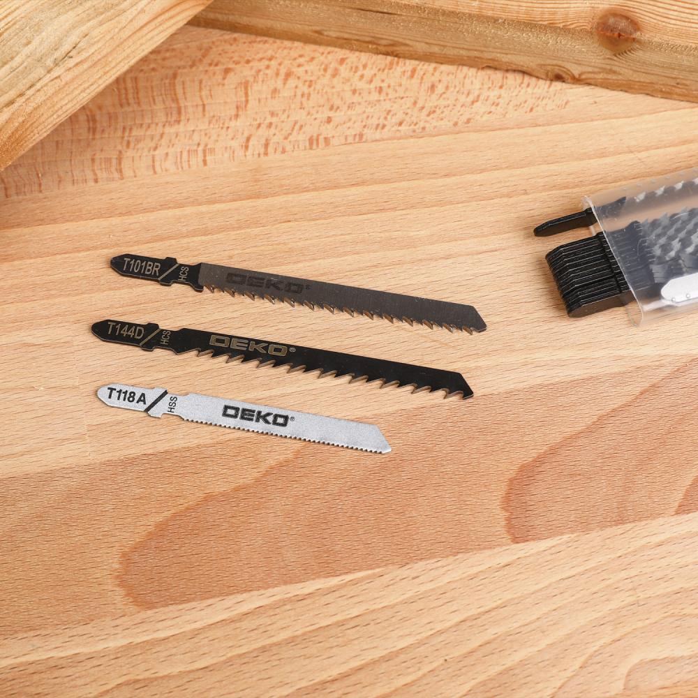 - Набор пилок для лобзика по дереву и металлу DEKO JSB20, 20 шт - совместим с любыми электролобзиками. Пилки для электролобзика производятся из прочной HCS стали.
