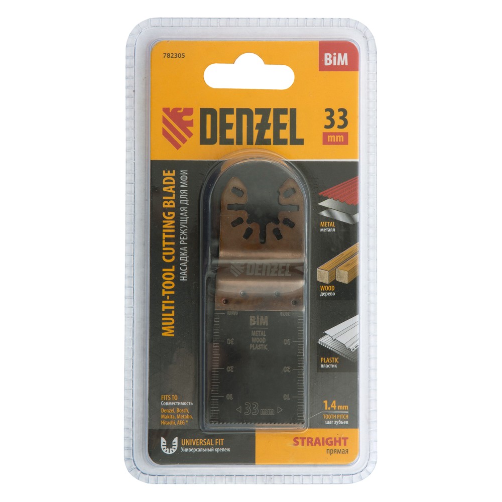 Насадка для МФИ режущая пазовая прямая, BiM, по металлу и дереву, 33 x 1.4 мм, мелкий зуб Denzel