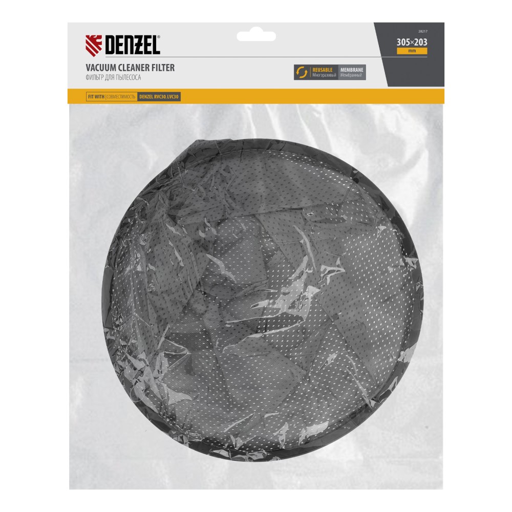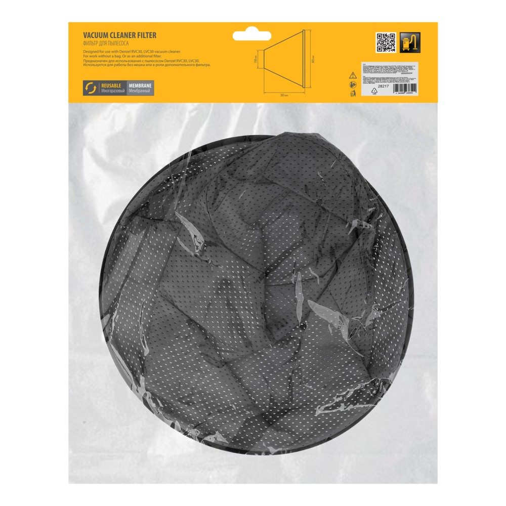Мембранный тканевый фильтр Denzel 28217 совместим со строительными пылесосами RVC30 (28203), LVC30 (28293). Устанавливается в бак пылесоса и служит для дополнительной фильтрации, а также позволяет проводить сухую уборку без использования мешка.ПреимуществаЭффективность — фильтр задерживает мелкие частицы пыли, не допуская их попадания в воздух.Долговечность — изделие можно стирать, поэтому оно подходит для многоразового использования.Удобное размещение на стенде — фильтр поставляется в упаковке с подвесом.